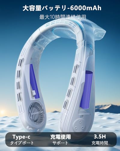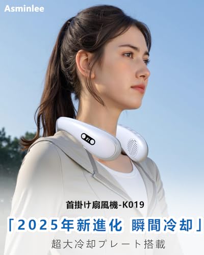 Asminlee【ネッククーラー 2025年夏新型】首掛け扇風機 瞬時冷却 冷却プレート 上下送風 6000mAh大容量 携帯扇風機 Type-C充電式 ネックファン風量3段階調節 LCDディスプレイ表示 暑さ対策グッズ プレゼント/オフィス/キャンプ 日本語取扱説明書付き