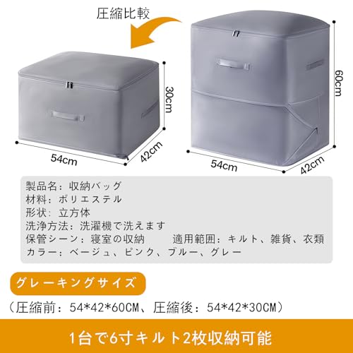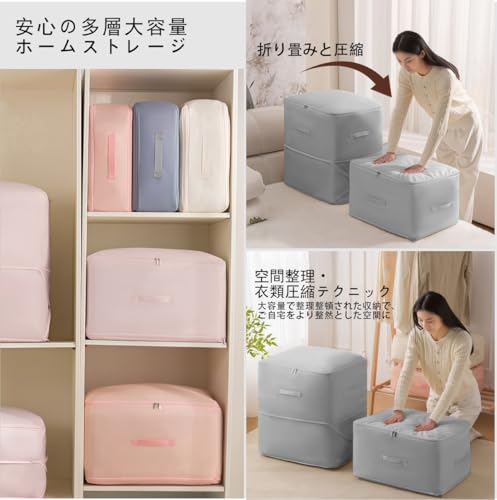 OSCENIEE 衣類収納袋 大容量 布団収納 圧縮ボックス 衣類圧縮袋 スペース 節約 折りたたみ式 収納ケース ぬいぐるみ収納 季節転換 省スペース 引越し 衣替え 季節転換 整理用品 繰り返す利用可能 (グレー, XXL) [並行輸入品]