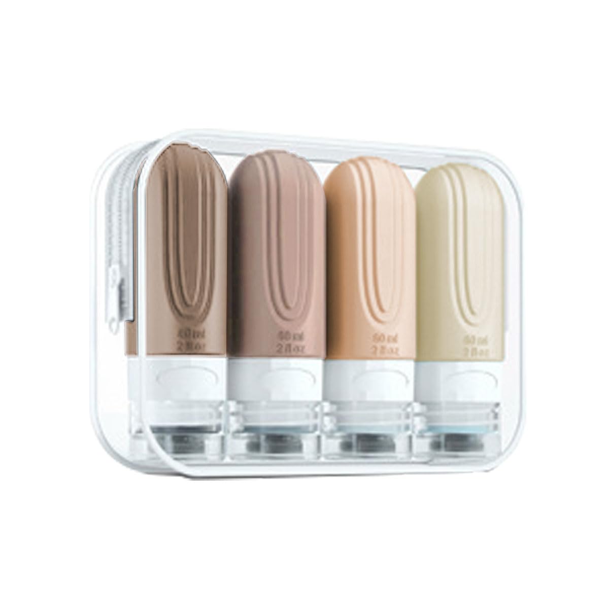 トラベルボトル 2025年新型 トラベルセット 一目でわかる 特殊な三重フタ構造 詰め替えボトル 携帯便利 旅行用 出張用 シャンプーボトル 収納ポーチ付 ブラシ 4本セット (クリーム色, 60ml)