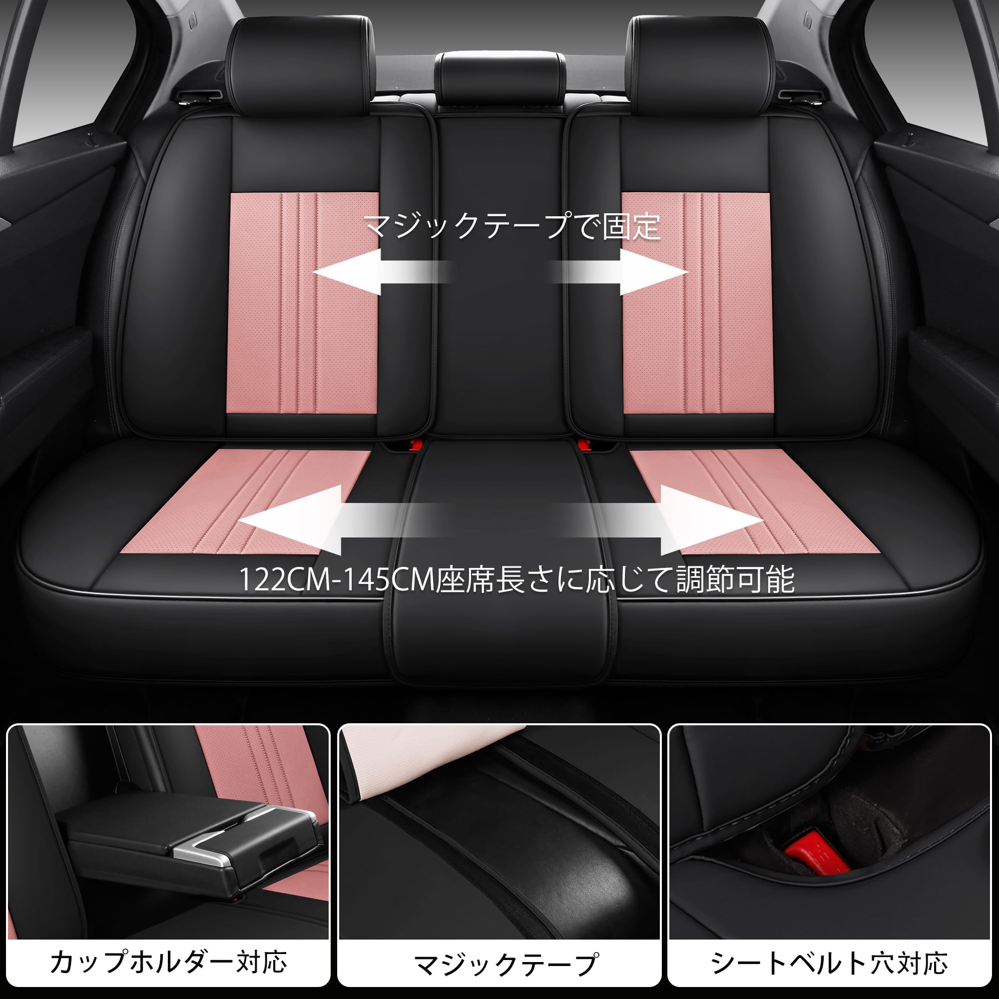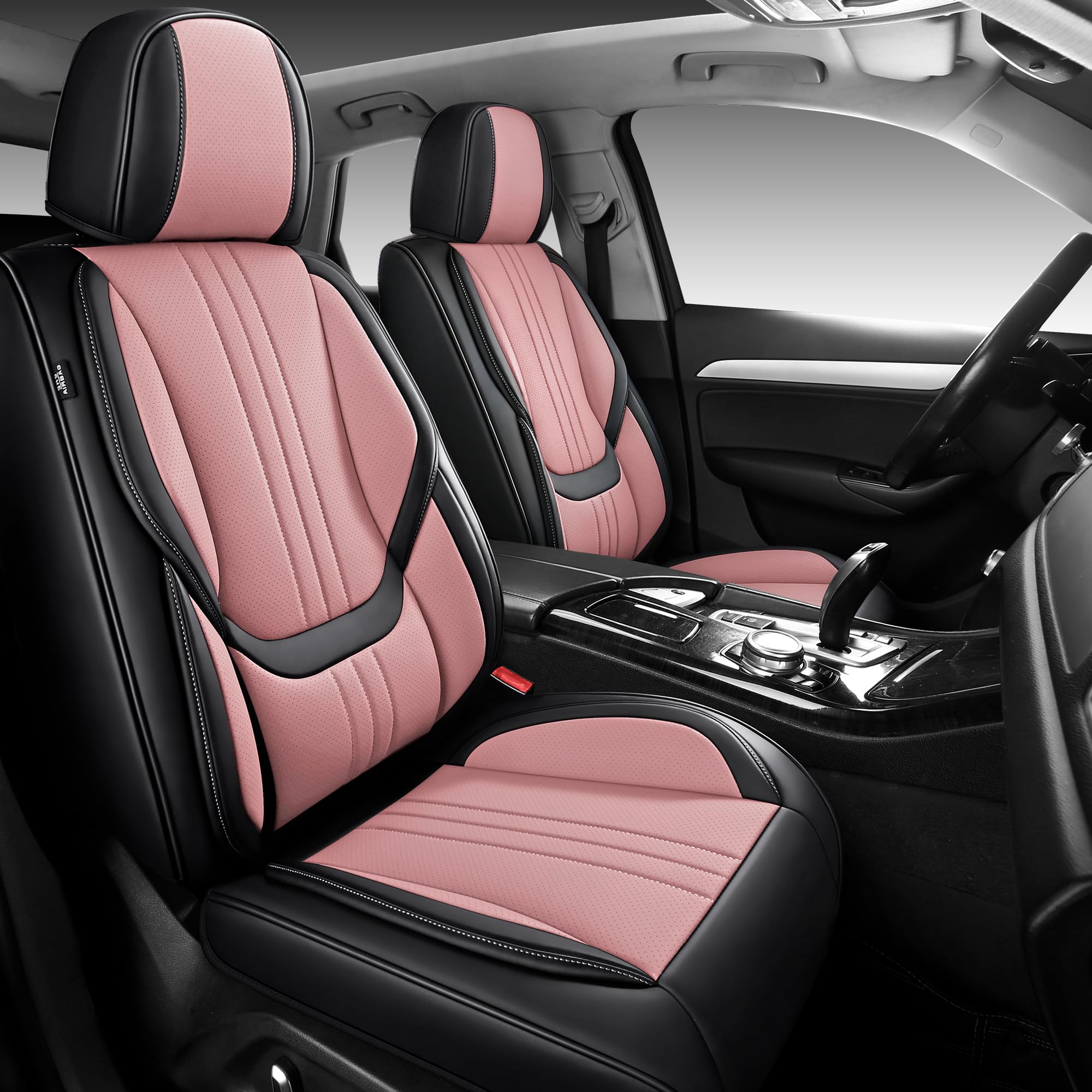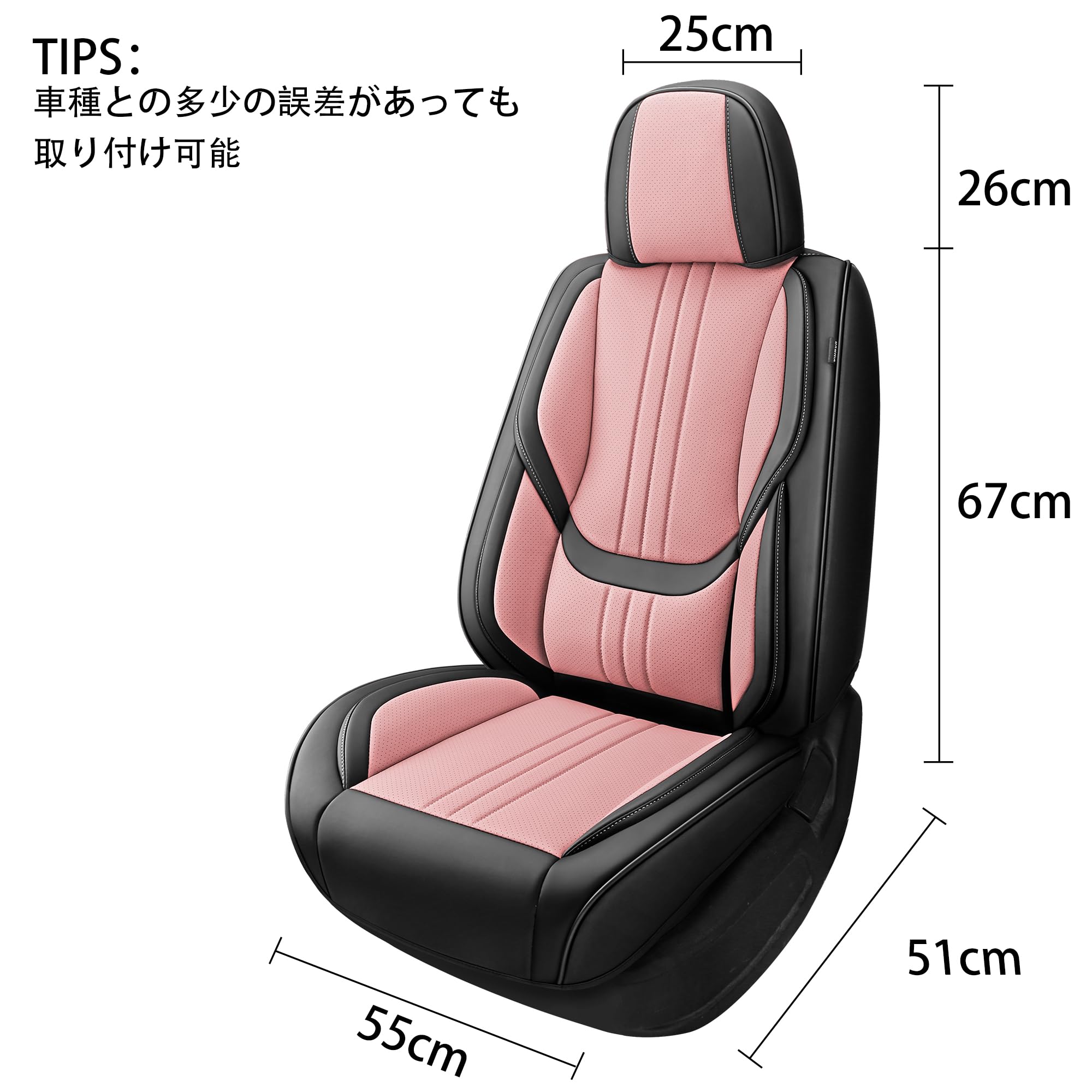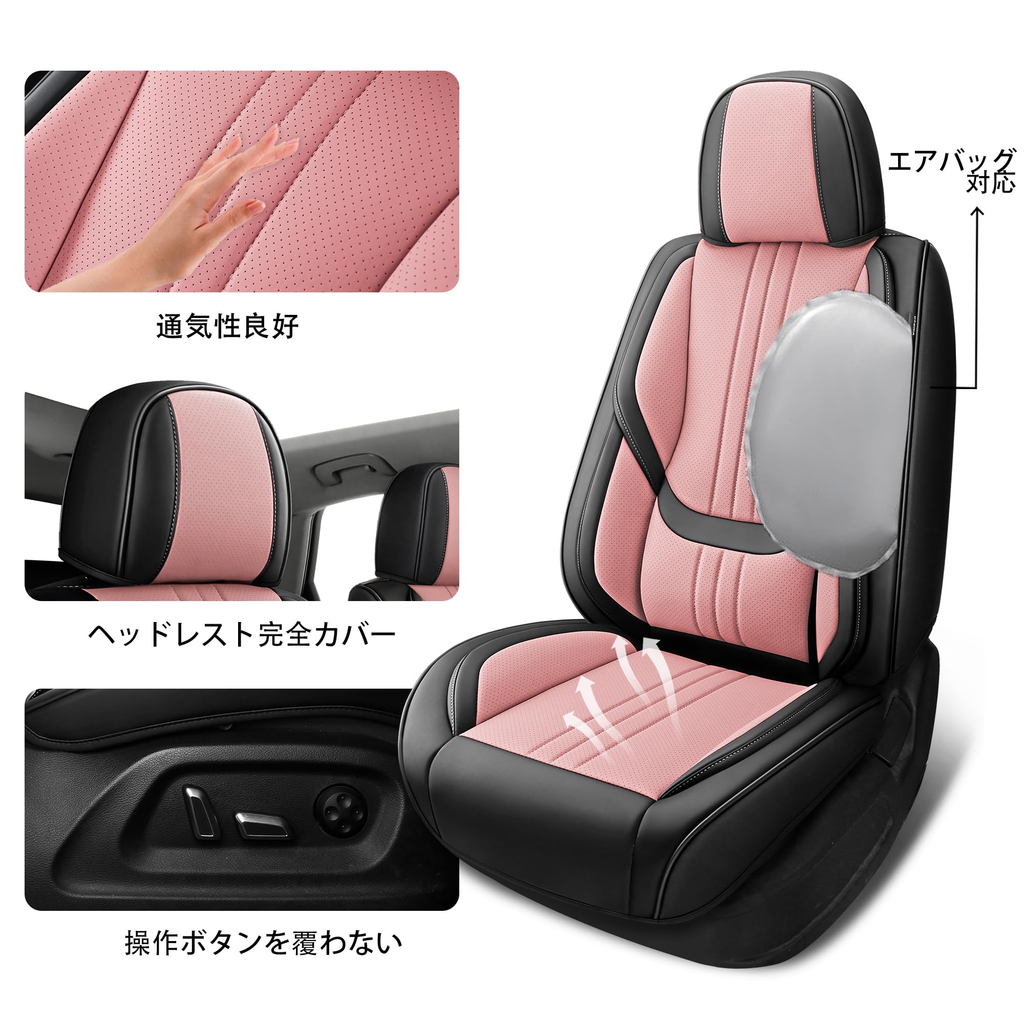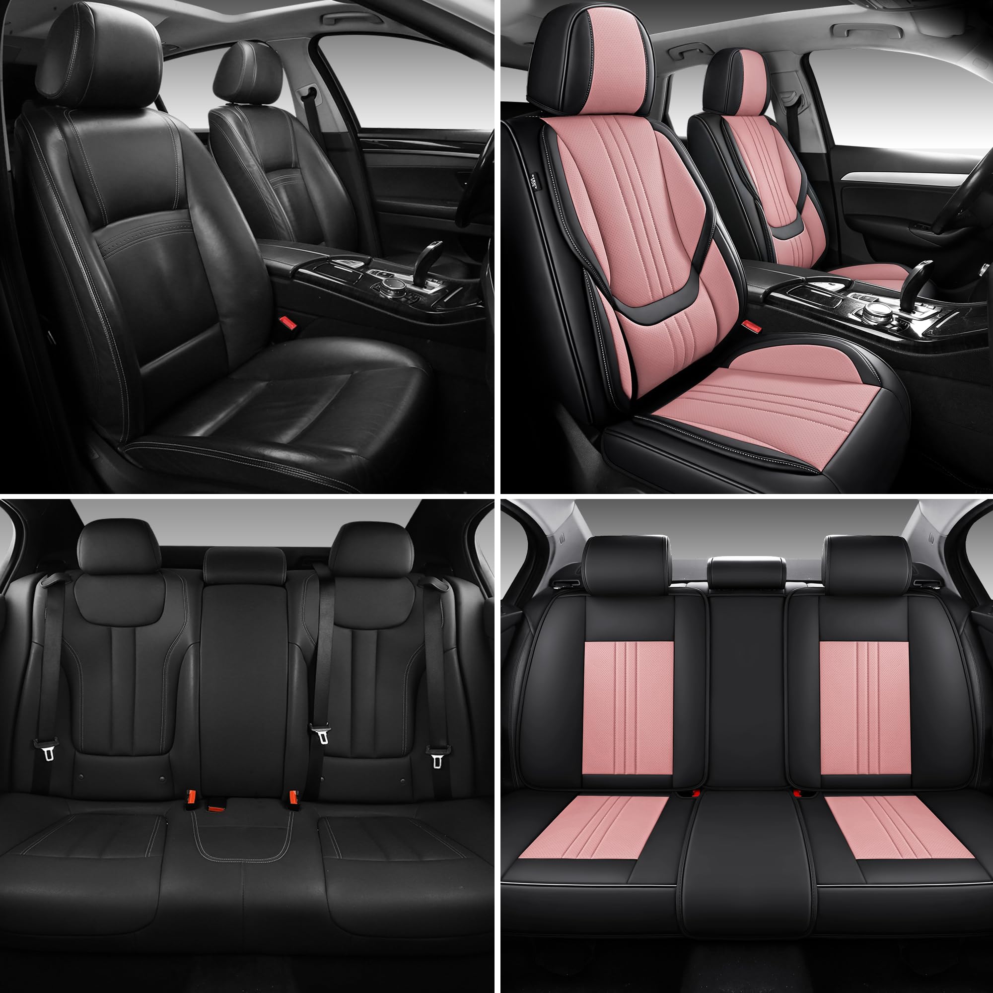 SIMGOO カーシートカバー ナパレザー 5人乗り 防水・防汚 簡単取付、ほとんどの自動車に適している(フルセット, 黒とピンク)