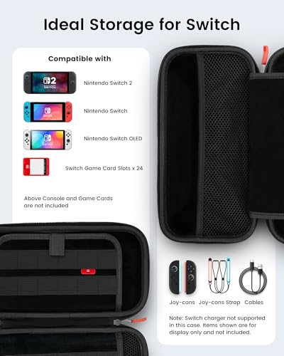 Pulchra スイッチ 2 用キャリングケース、保護ハードシェル トラベルキャリーケース、ゲームカードスロット 10 個付き