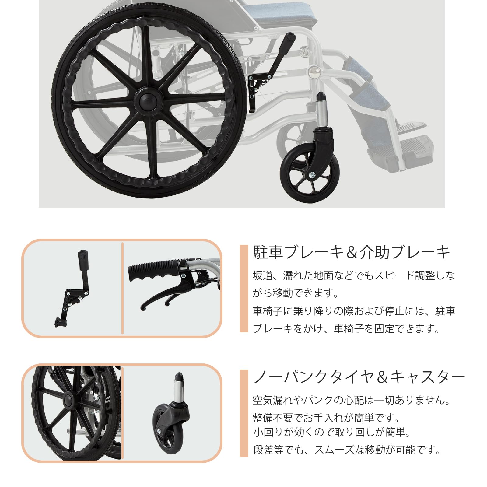 LightCrutch 車椅子 折り畳み式車いす 自走·介助兼用 車イス ソリッドゴムタイヤ コンパクト 組立不要 介助ブレーキ付き 屋内外で兼用 LCHS301