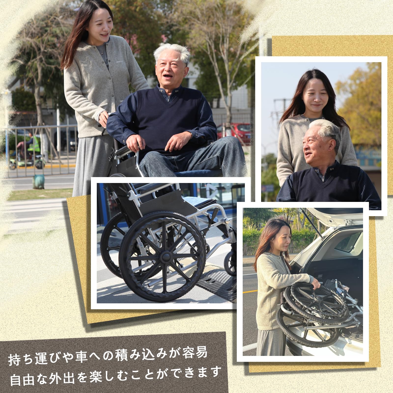 Zurcheel 自走用車椅子 車椅子 自走式 折り畳み式車椅子 軽い車椅子 アルミ製 コンパクト 介助ブレーキ付き 外出用 室内用