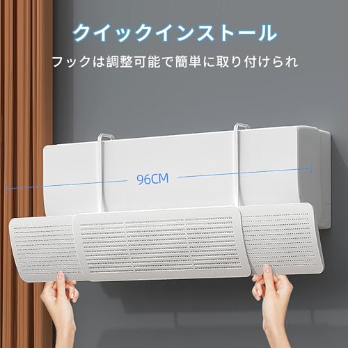 Vixplorn アコン風よけ エアコン 風除け 壁掛け式 直撃風防止 空気循環 節電 省エネ 冷房暖房通用 風向き上下180°調整可能 結露対策 多孔質ろ過 安全と健康 長さ調節可能 取り付け簡単 穴あけ不要 オールシーズン使用可能 お手入れ簡単 ホワイト