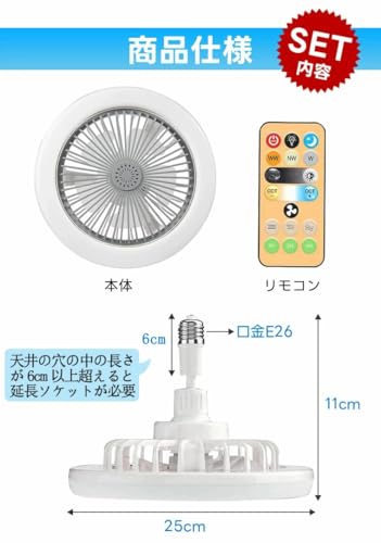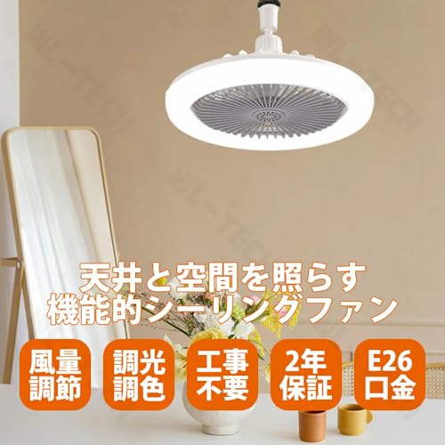 【小型・節電】Alcides シーリングファンライト ファン付き照明 シーリングファン 扇風機 20W 2000lm 無階段調色/調光 3階段風量選択 軽量 6畳 8畳 空気循環 5枚羽根 ソケット式/引掛け式 タイマー機能 洗面所 物置き トイレ 玄関 廊下 クローゼット (リモコン付き・角型引掛けソケット付き)