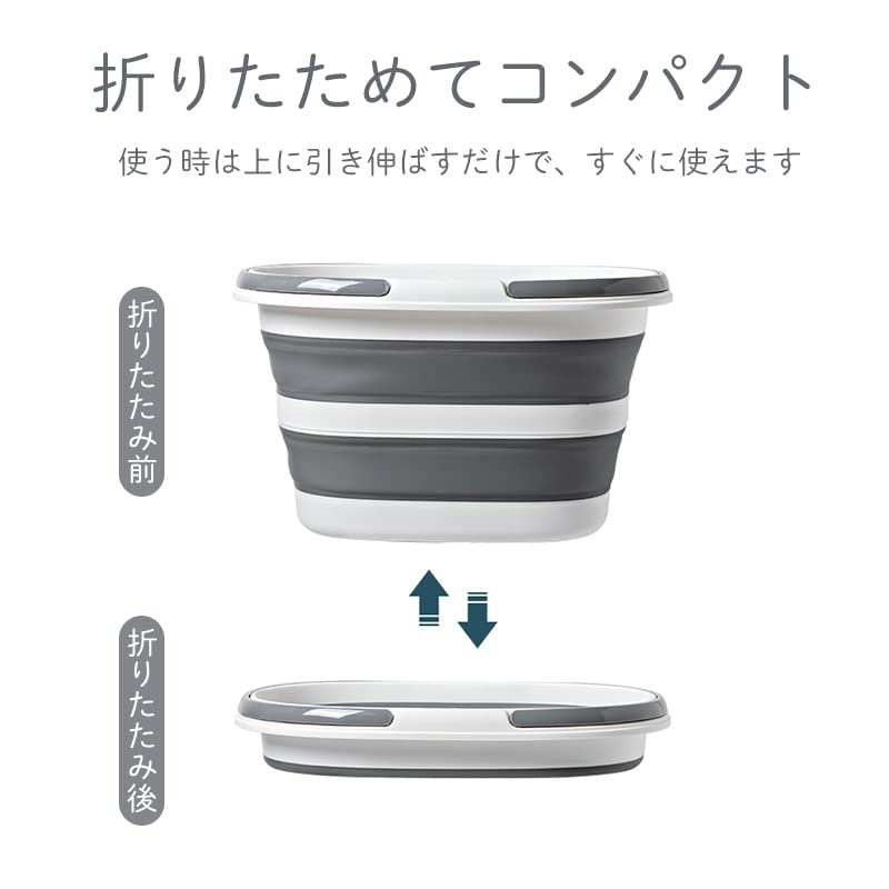 折りたたみ式洗面台、折りたたみ式バケツ、柔らかいシリコン素材、コンパクトな構造、省スペース、洗濯掃除、足湯、アウトドア旅行、多目的、ポータブル、正方形 (グレー, S)