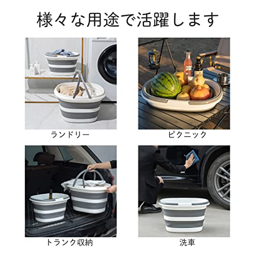 Gorocking 折りたたみ バケツ 9L 大容量 おしゃれ 3色 シャワ キャンプ 洗濯 洗車 足湯 釣り (グレー)