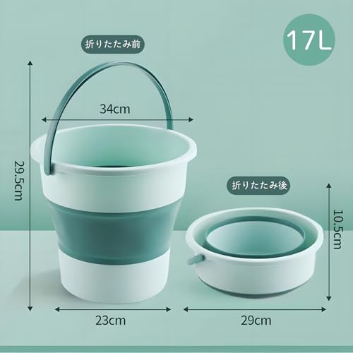 Gorocking 折りたたみ バケツ 5L/10L/17L 4色 掃除 洗濯 洗車 足湯 釣り (グリーン, 17L)