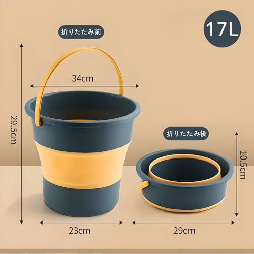 Gorocking 折りたたみ バケツ 5L/10L/17L 4色 掃除 洗濯 洗車 足湯 釣り (イエロー, 17L)