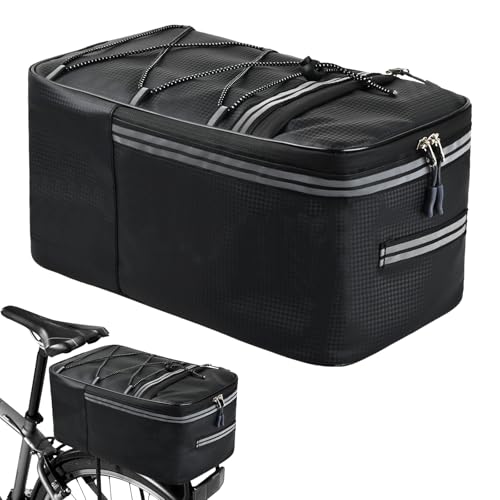自転車リアラックバッグ特大14L自転車トランクバッグ多機能バイクパニアバッグ、マルチポケットサイクリングリアシート収納バッグ、ショルダーストラップ&反射エリア付きリアキャリア用バイクバッグ