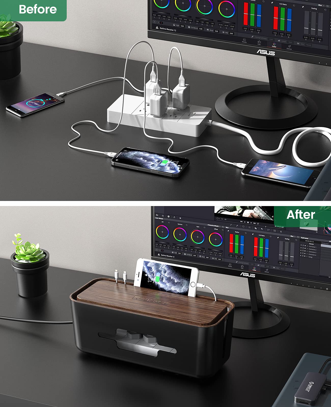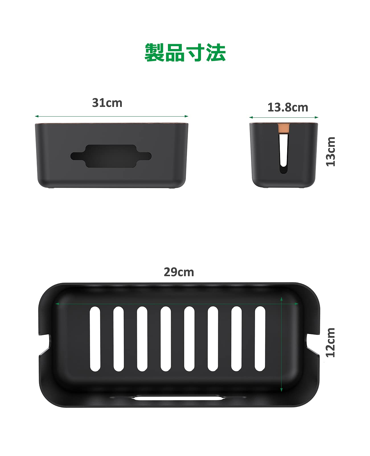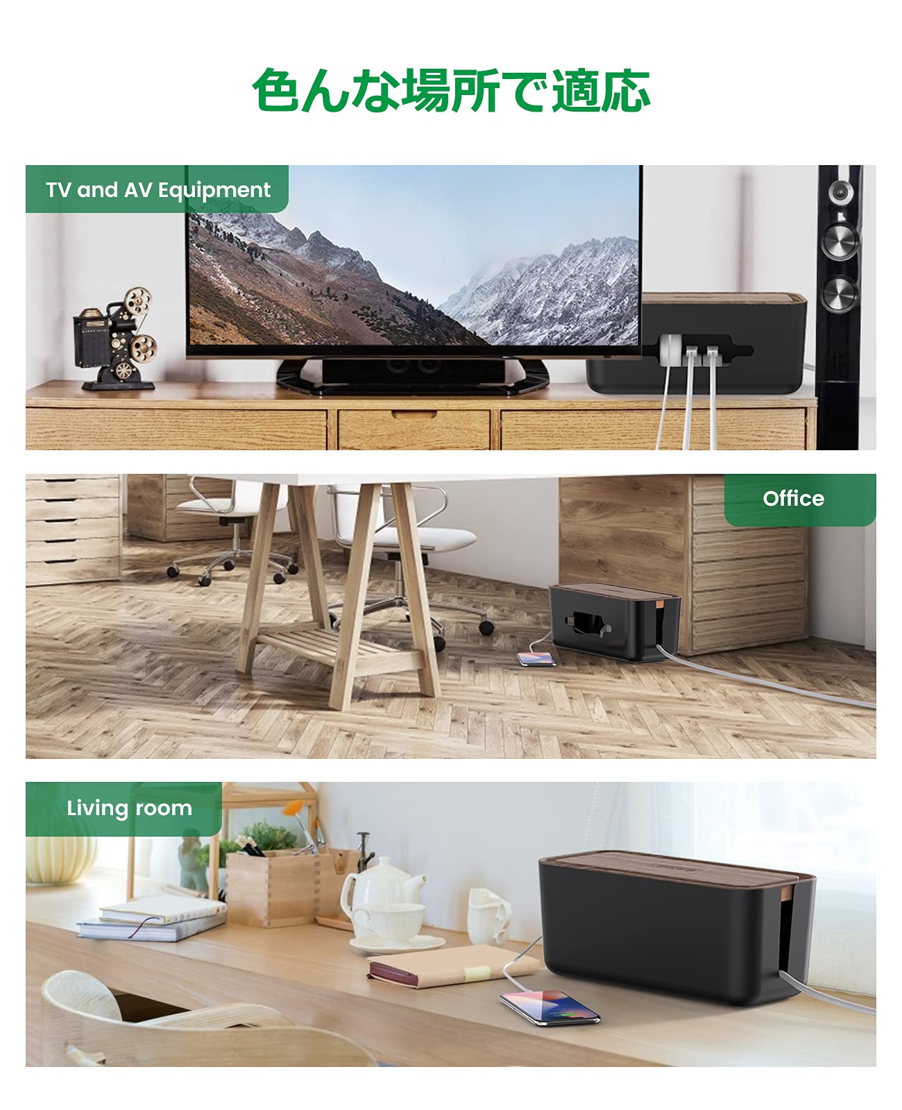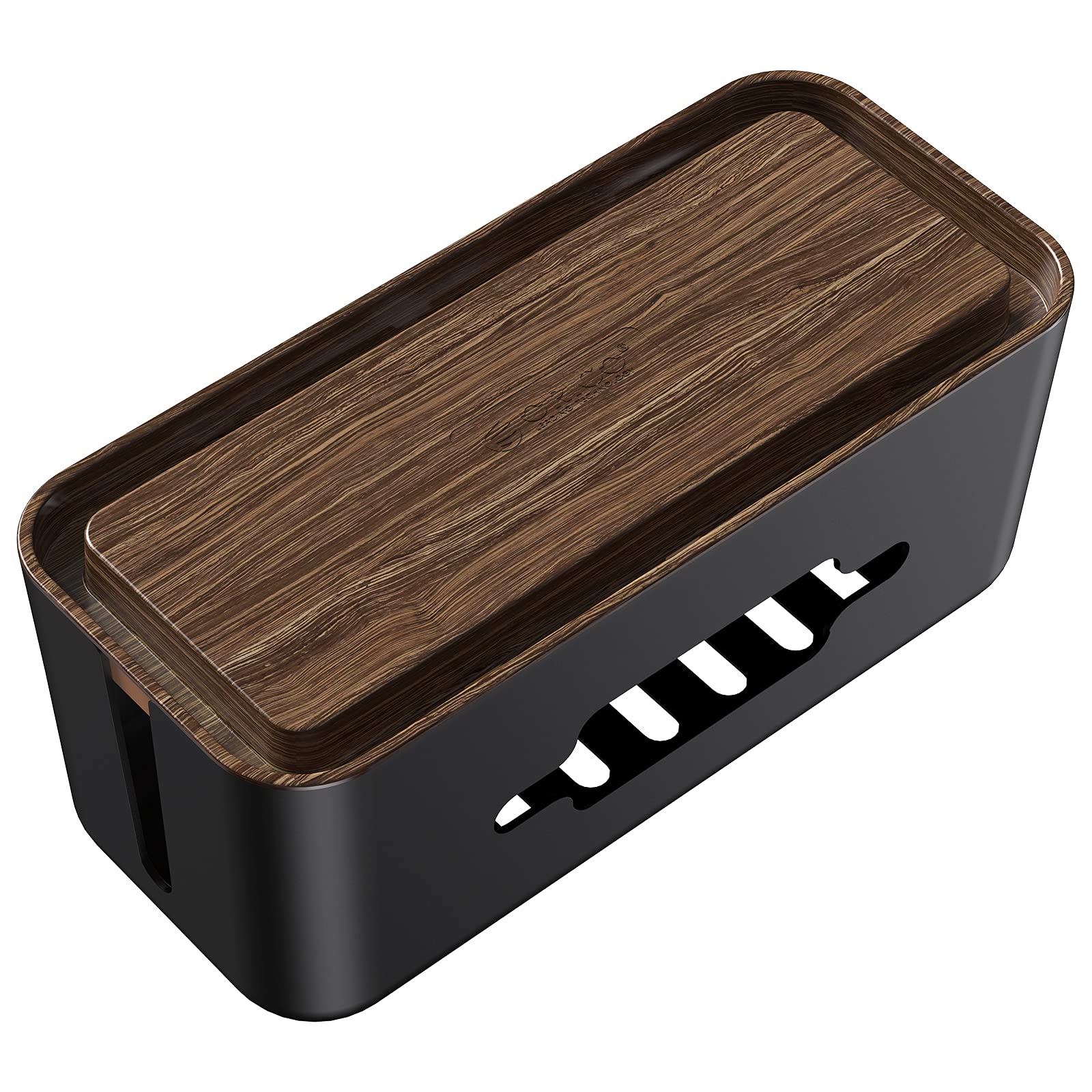 ケーブルボックス 電源タップ/コンセント等 収納 ケース 配線隠し ホコリ防止 ORICO 安全保護 配線ホール スマホスタンド 電源コード整理 良い放熱性 配線ボックス 黒+木目調 (Mサイズ) CMB-18-BR-WD