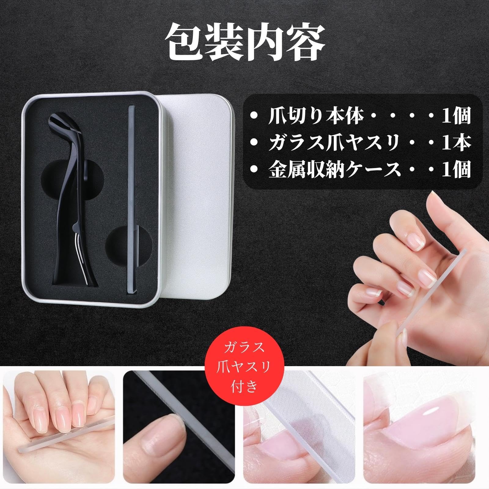 【正規品】爪切り 湾曲刃「手首・腰の撓み軽減」高級 足用 両面切れ 高齢者 KINCOSY ステンレス刃物鋼 ガラス爪ヤスリ 金属収納ケース (黒色)