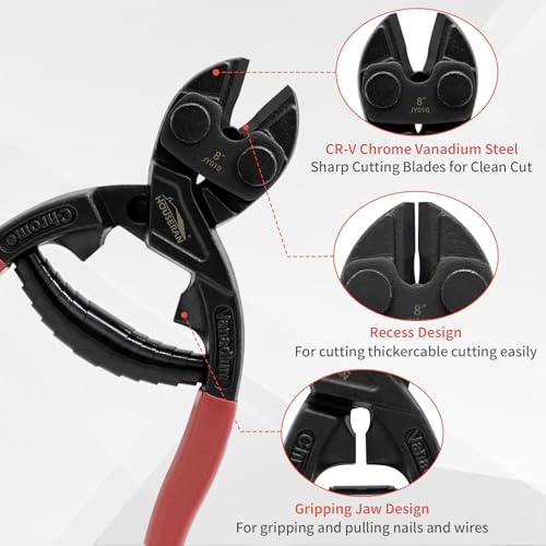 ワイヤーカッター 220mm ボルトカッター 硬鋼線カッター 番線カッター 刃先の開き CR-Vクロムバナジウム鋼製 簡単切断 軽量 調整可能 滑り止めグリップ ロック機能付き 金属 切断工具