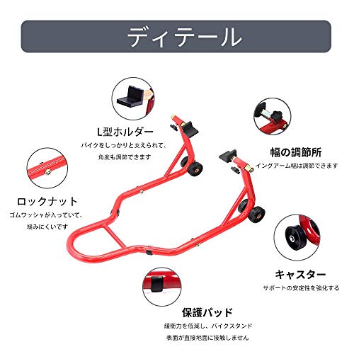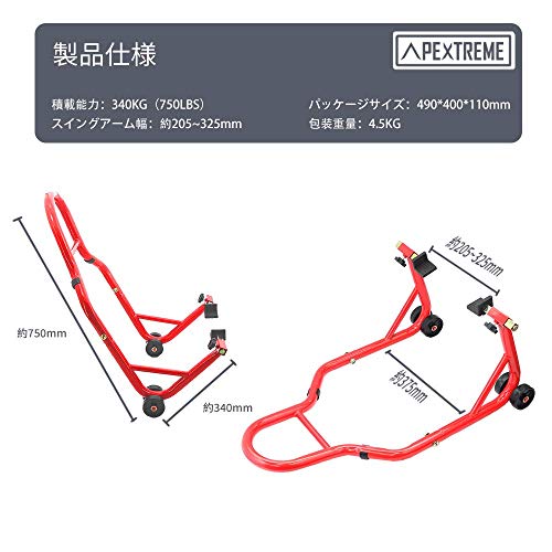 Apextreme バイクスタンド メンテナンススタンド リアスタンド 後輪用 リア用 耐荷重340kg キャスター付き 六角レンチ付き L型
