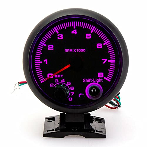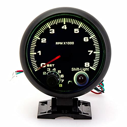 Ladieshow 3.75in 12VLEDバックライトタコメーターゲージ0-8000RPMポインタータコゲージメーター、12Vガソリン車用の調整可能なシフトライト付き