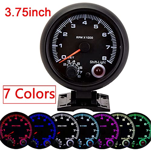 BlyeMichdi 95mm/3.75インチ タコメーター ゲージ LED、マリンタコメーター 車 トラック ボート タコゲージ 車 ユニバーサル ブラック タコメーターゲージ、RPM 7色 LEDライト ポインターインジケーター デイール 0-8000 RPM