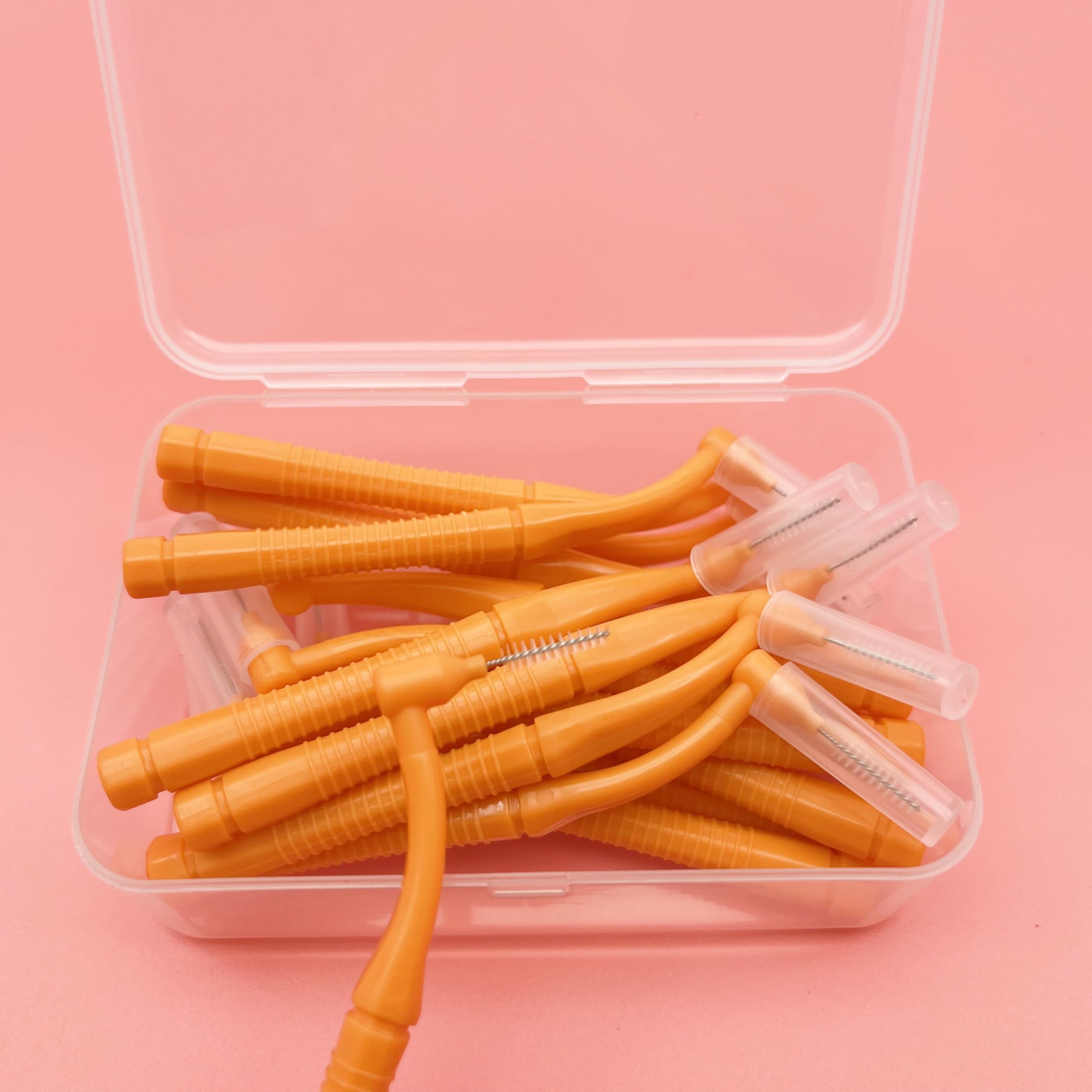 近位ブラシ 歯間ブラシ 歯間ブラシ L角 再利用可能デンタルクリーナー 使い捨て口腔衛生ブラシ 歯磨き用爪楊枝フロス 歯磨き道具 (1.2mm オレンジ ノーマル)