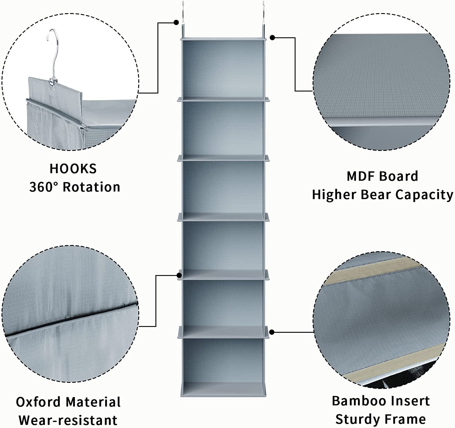 YRCBEHFU 吊り下げ収納 4段 2点 クローゼット 衣類ラック 最新竹製天然版 帽子/鞄 収納ラック 大容量 取付簡単 折りたたみ 収納/旅行/出張 30x30x80cm (グレー、 2#4段)