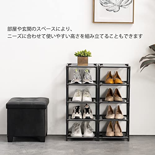 YOUDENOVA シューズラック10段 靴収納 分割可 シューズラックスリム 省スペース 組み立て式 10足 不織布 玄関に靴を効率収納 (ブラック、10段)