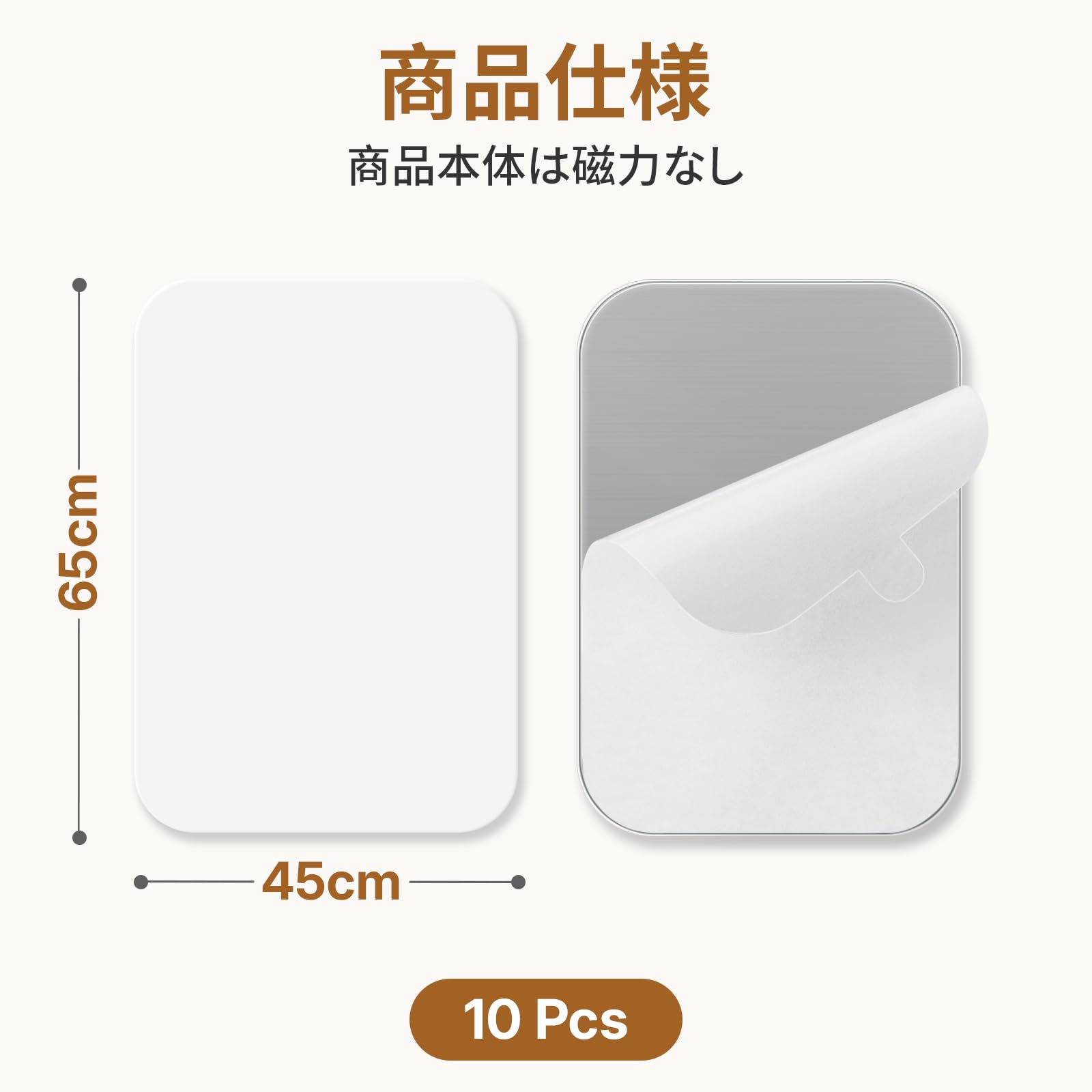Toski スチールプレート マグネット補助板 10枚セット 超強力 両面テープ スチールシート マグネット吸着用 18-8ステンレス メタルプレート 白い 磁石がくっつく シート 65×45×1mm 金属プレート 薄型 省スペース 防水 錆びにくい 金属板 キッチン 浴室 玄関 ホワイト