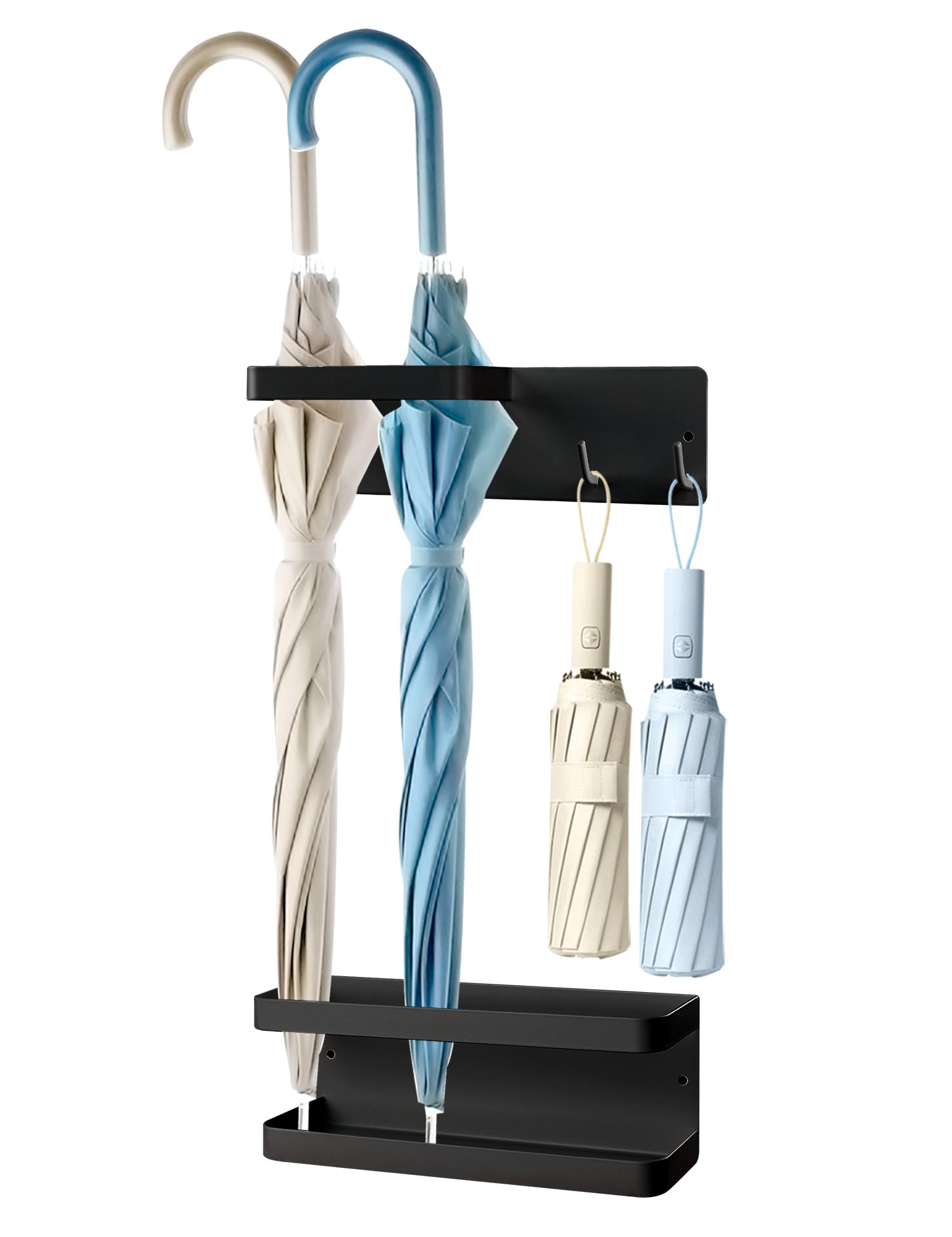 マグネット 傘立て 壁掛け アンブレラスタンド スリム 傘たて フック付き 小物収納 傘置き スマート 傘かけ 高さ調節可能 傘掛け コンパクト かさラック トレー付き 雨水収集 多機能傘収納 玄関/扉/屋外/キッチン/浴室収納 (ブラック)