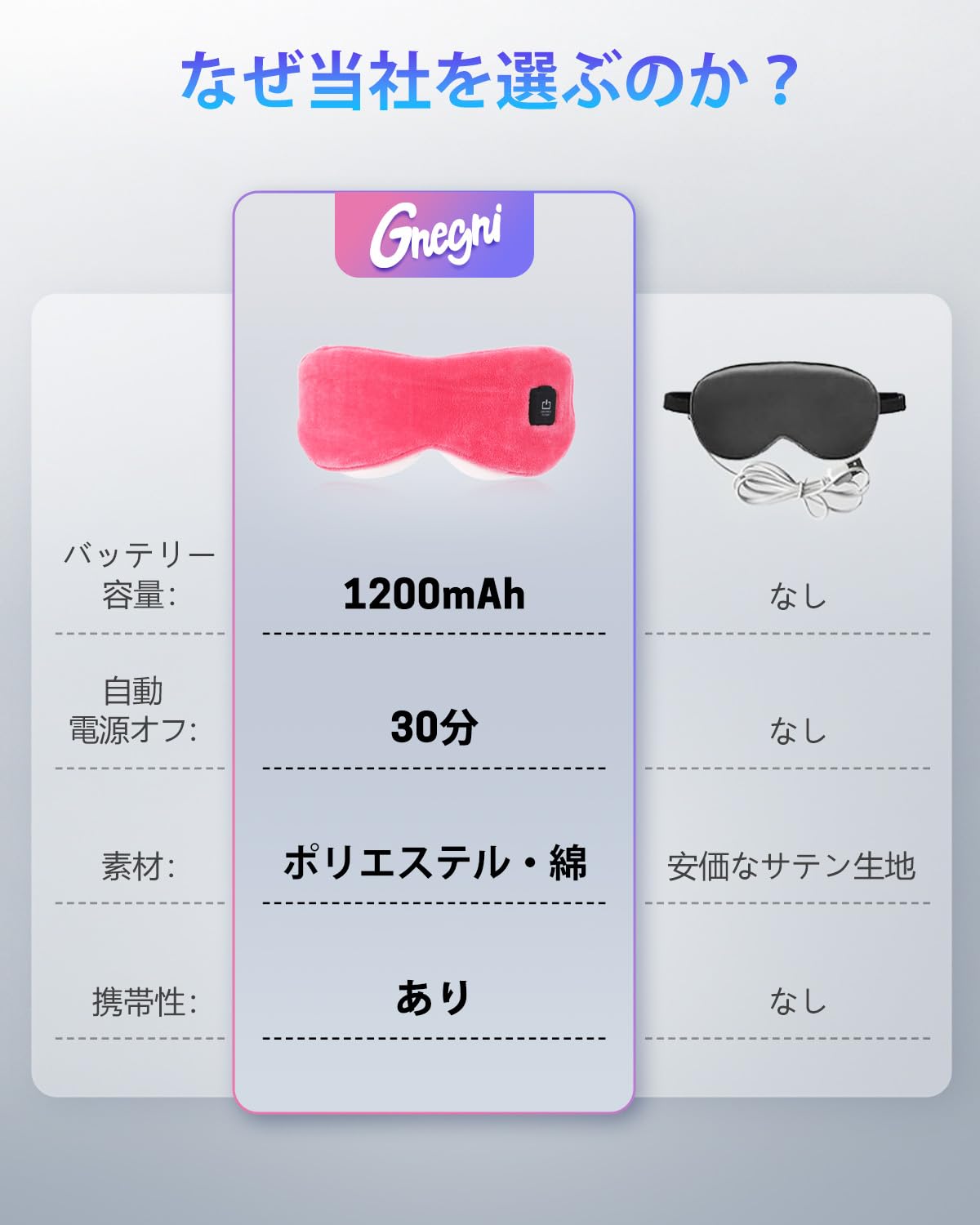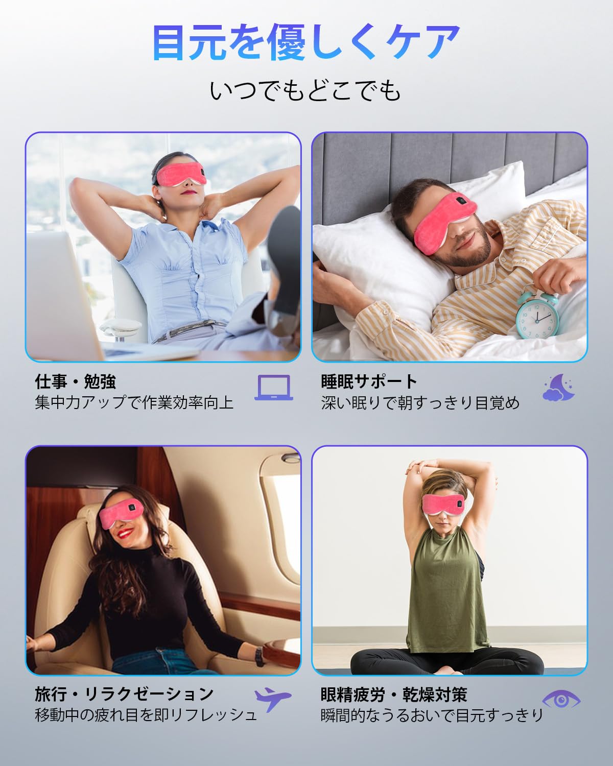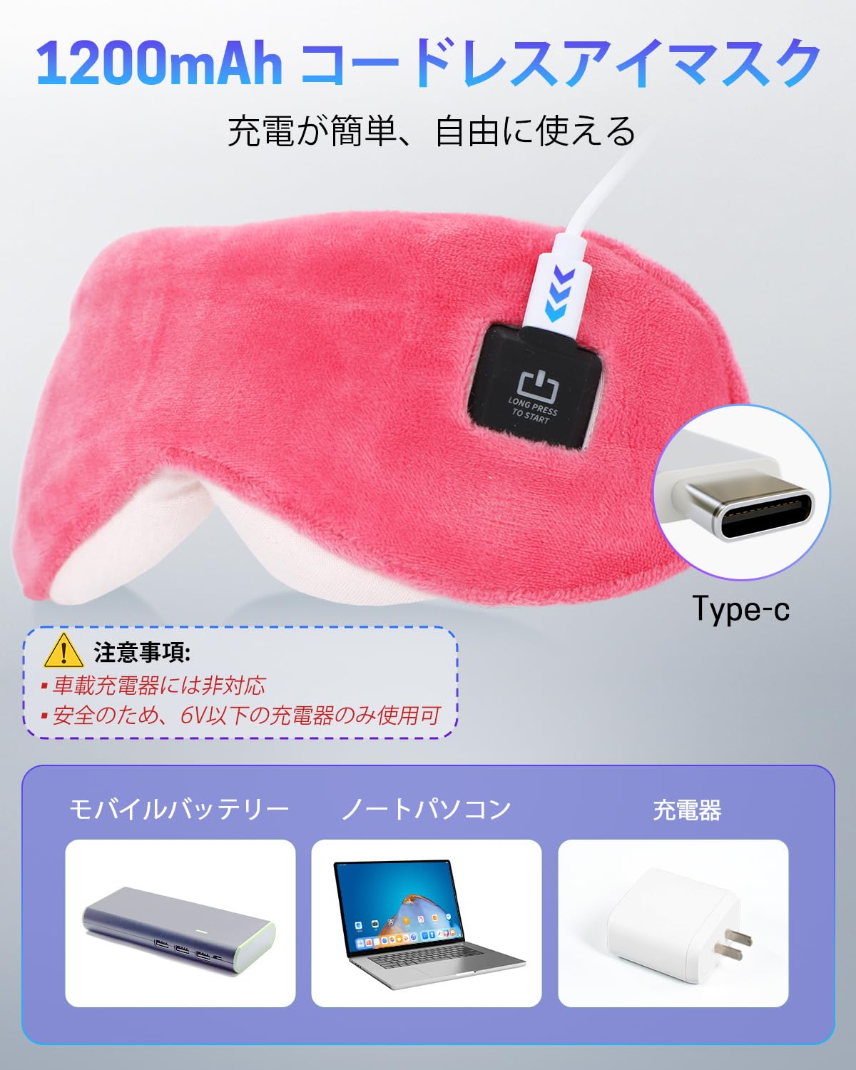 【Type-C充電式】ホットアイマスク コードレス 3段階温度調節&タイマー付き 快速加熱 100%遮光 洗えるサラフワカバー付属 快眠/安眠/リラックスに (オフィス・旅行・出張対応 男女兼用 プレゼントに最適) (ピンクL)