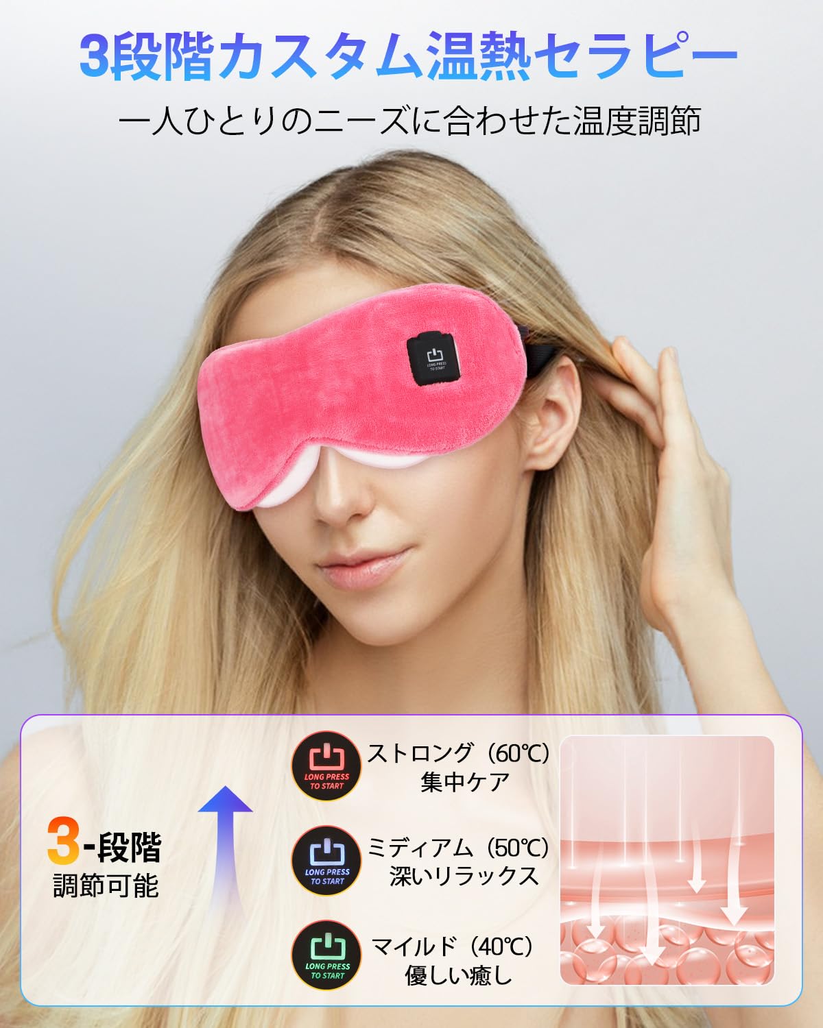 【Type-C充電式】ホットアイマスク コードレス 3段階温度調節&タイマー付き 快速加熱 100%遮光 洗えるサラフワカバー付属 快眠/安眠/リラックスに (オフィス・旅行・出張対応 男女兼用 プレゼントに最適) (ピンク)