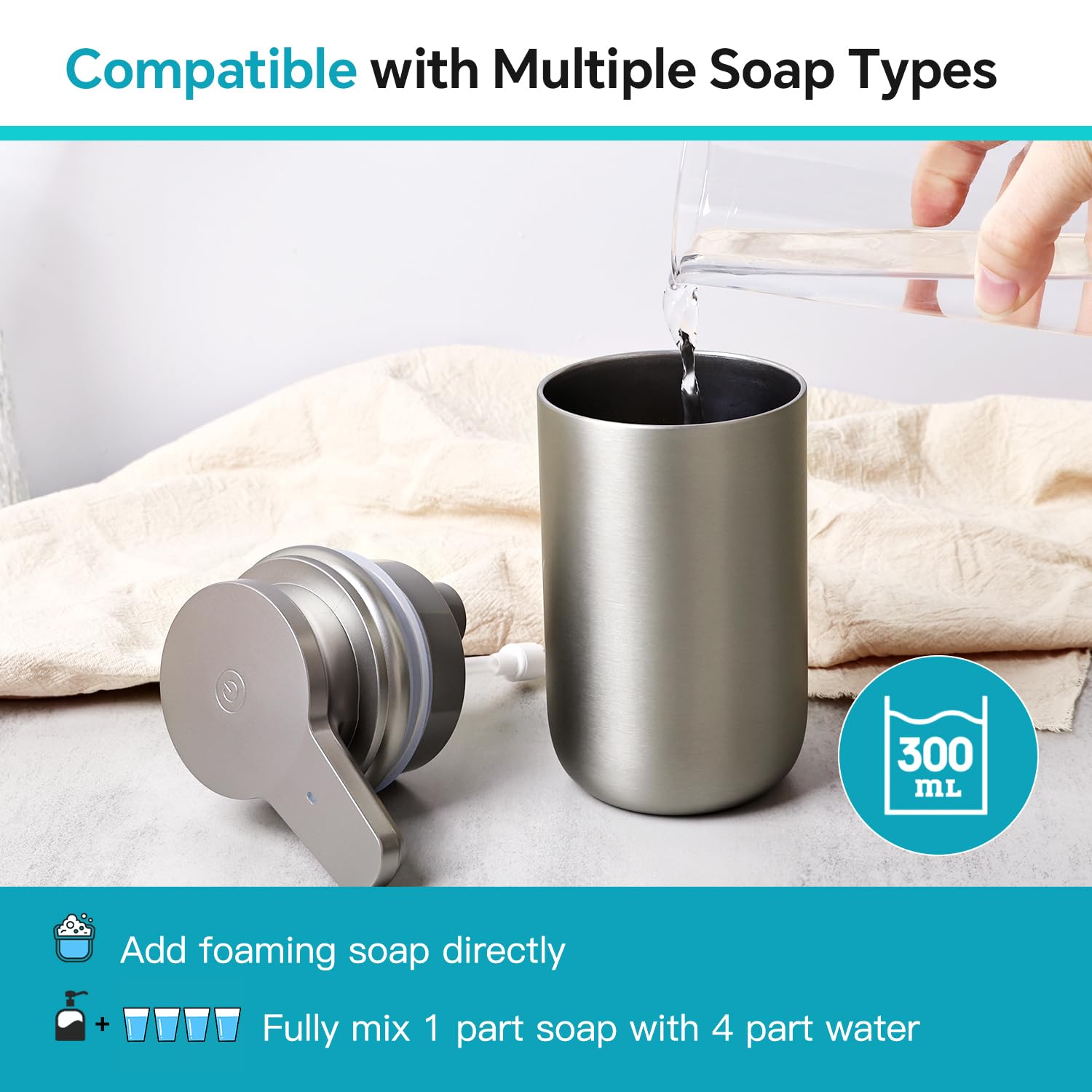 LAOPAO ソープディスペンサー 自動 泡 ステンレス鋼製 2段階 手洗い オートディスペンサー 充電式 ハンドソープディスペンサー 食器洗剤 ハンドソープ 台面 トイレ キチン シルバー X20 metal silver [並行輸入品]