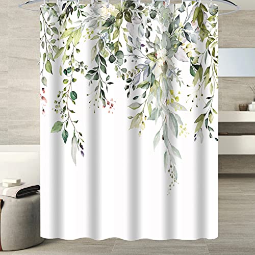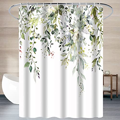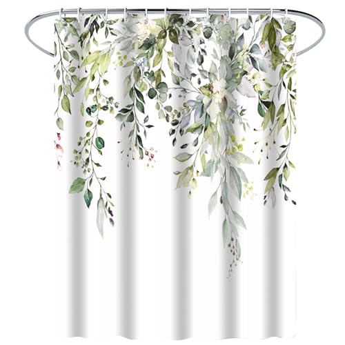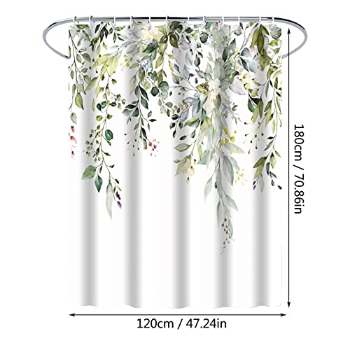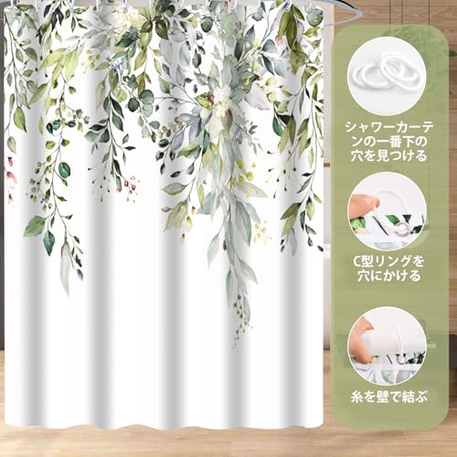 シャワーカーテン 180cm丈 幅120cm バスカーテン 防カビ 防水 速乾 目隠し 間仕切り 緑の葉の柄 お風呂カーテン リング付き ホテル 浴室 バス用品 取付簡単
