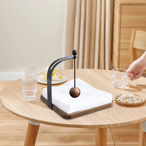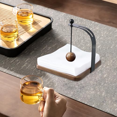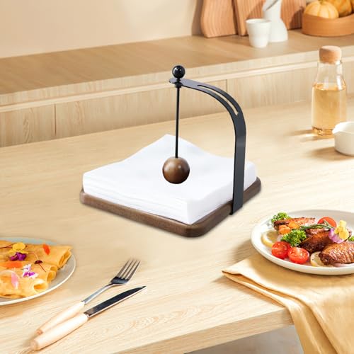 ナプキンスタンド ナプキンホルダー テーブルペーパーナプキン用 木製ベース付き 紙ナプキンホルダー 卓上 ナプキン立て お洒落 ペーパーナプキンホルダー 名刺立て ティッシュペーパーディスペンサー 組み立て簡単 家庭用 レストラン カフェ ホテル 業務用 ダイニングテーブル飾り 食卓飾り 食事会 パーティー おしゃれ 15,3 x 7,4 x 13,5 cm (ブラック)