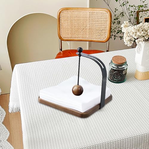 ナプキンスタンド ナプキンホルダー テーブルペーパーナプキン用 木製ベース付き 紙ナプキンホルダー 卓上 ナプキン立て お洒落 ペーパーナプキンホルダー 名刺立て ティッシュペーパーディスペンサー 組み立て簡単 家庭用 レストラン カフェ ホテル 業務用 ダイニングテーブル飾り 食卓飾り 食事会 パーティー おしゃれ 15,3 x 7,4 x 13,5 cm (ブラウン)
