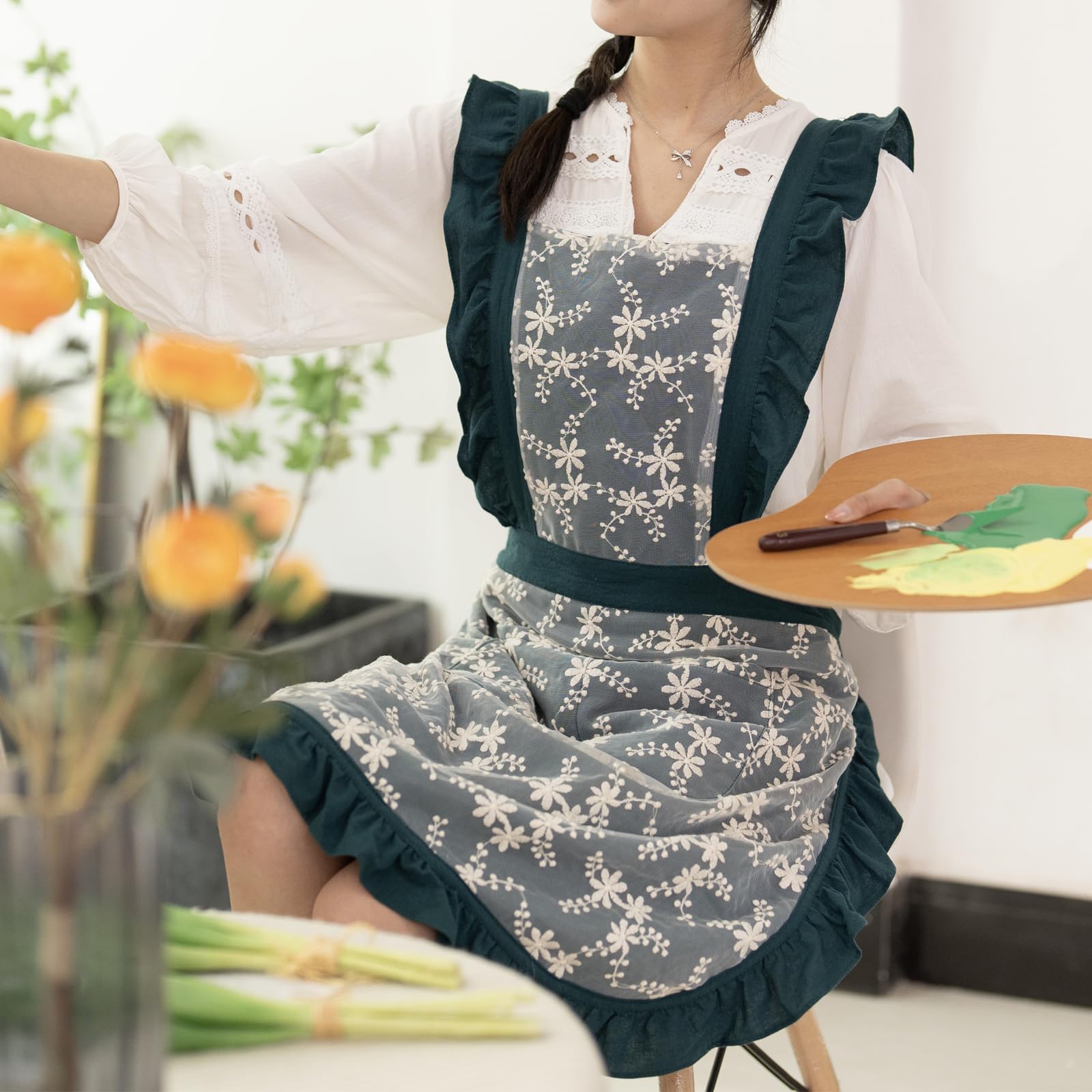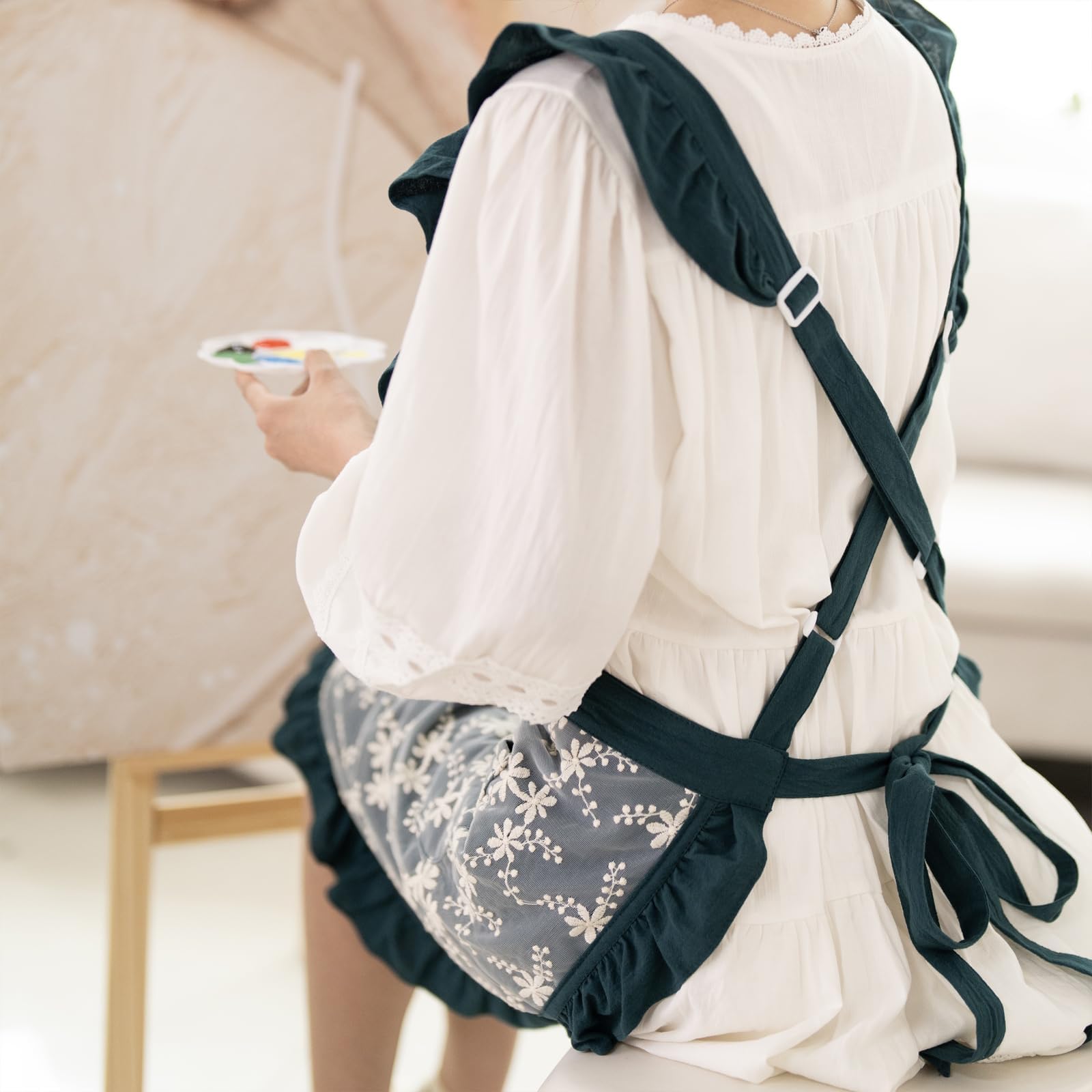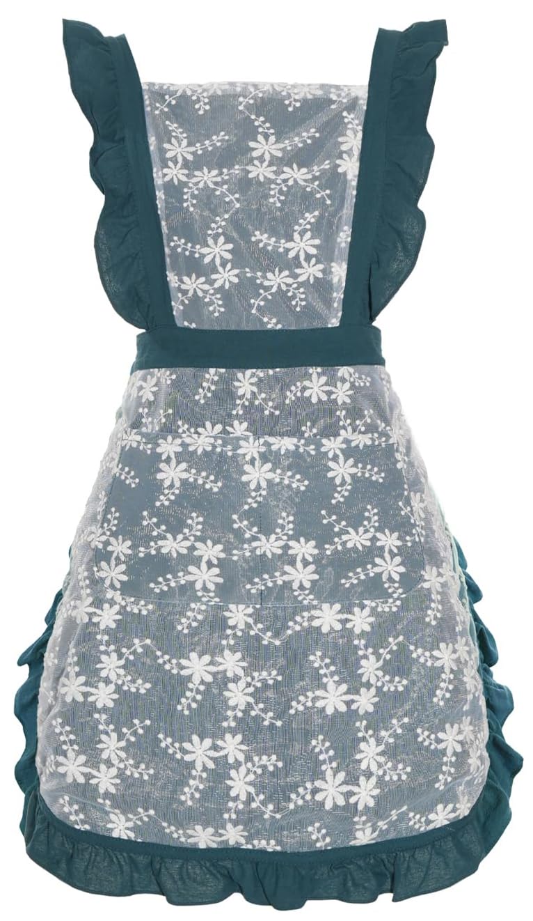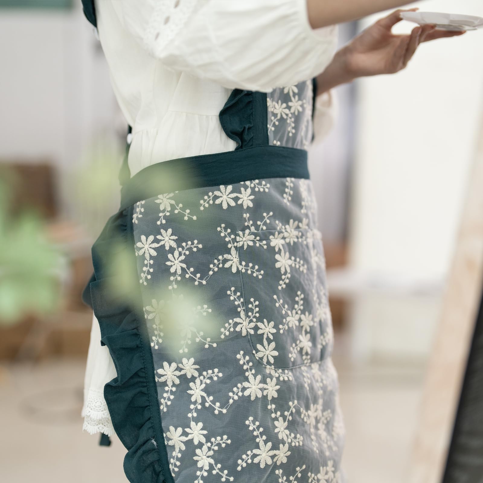 [Joolxxo] エプロン レディース おしゃれ 可愛い レース付き 花の刺繍 調節可能 大容量ポケット2つ 付き 汚れにくい シワ防止 ダイニングルーム コーヒーショップ 家事に最適 園芸 保育園 花屋 用