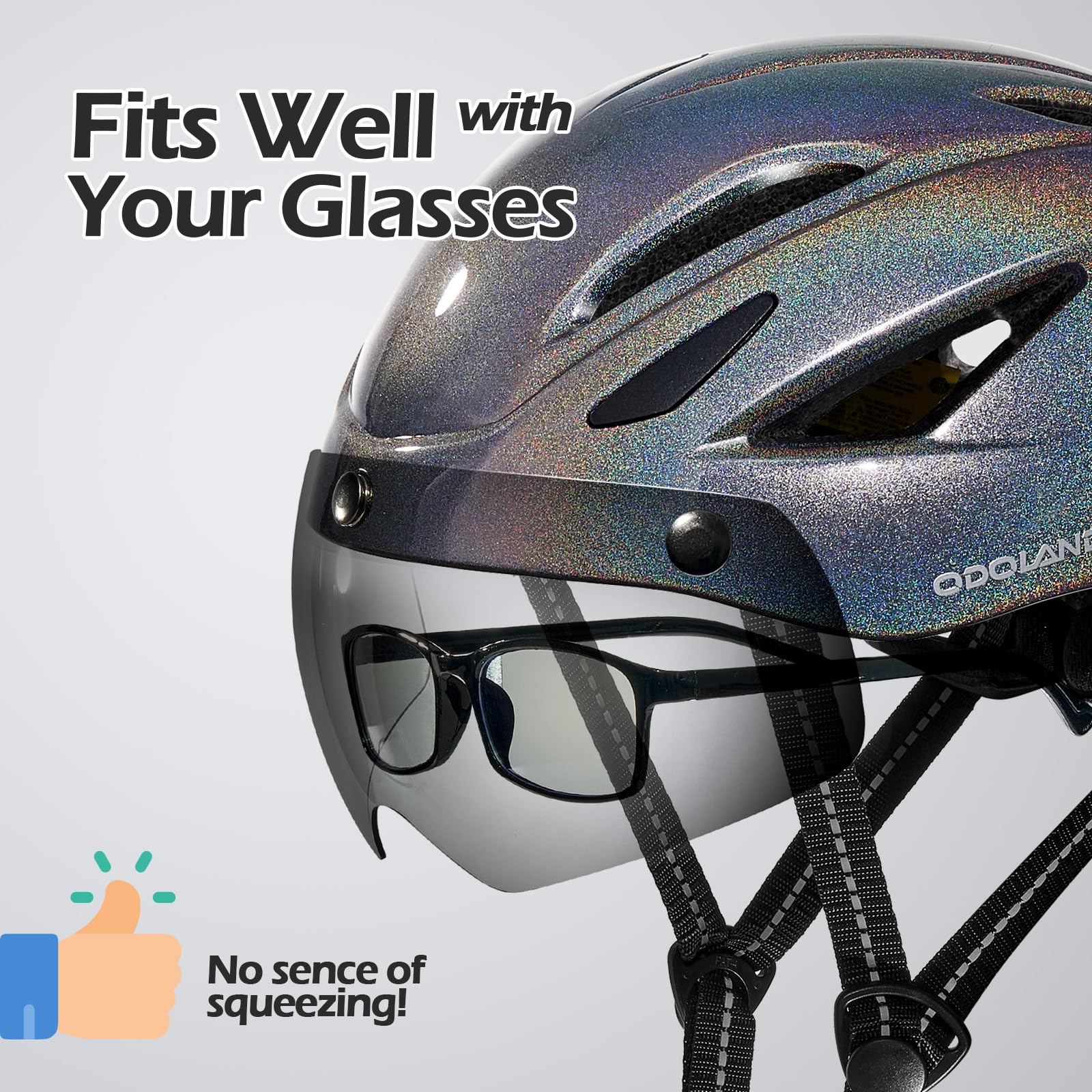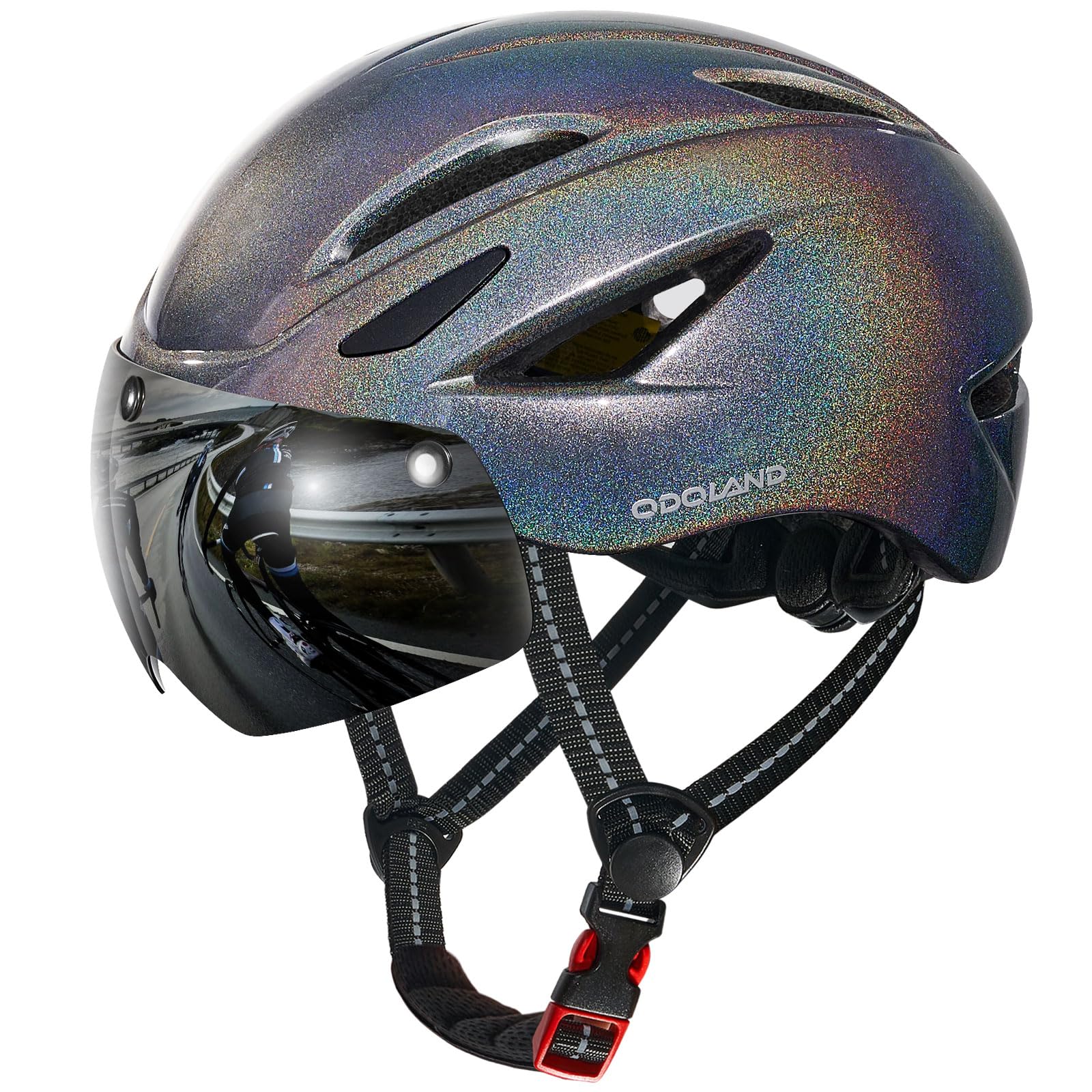 Odoland 自転車ヘルメット 磁気ゴーグル付き ASTM/CE/CPSC認証 高剛性 耐衝撃 超軽量 高通気性 アゴパッド サンバイザー付き 54-62cm サイズ調整可能 男女兼用 街乗り 通勤 サイクリング ロードバイク スポーツヘルメット