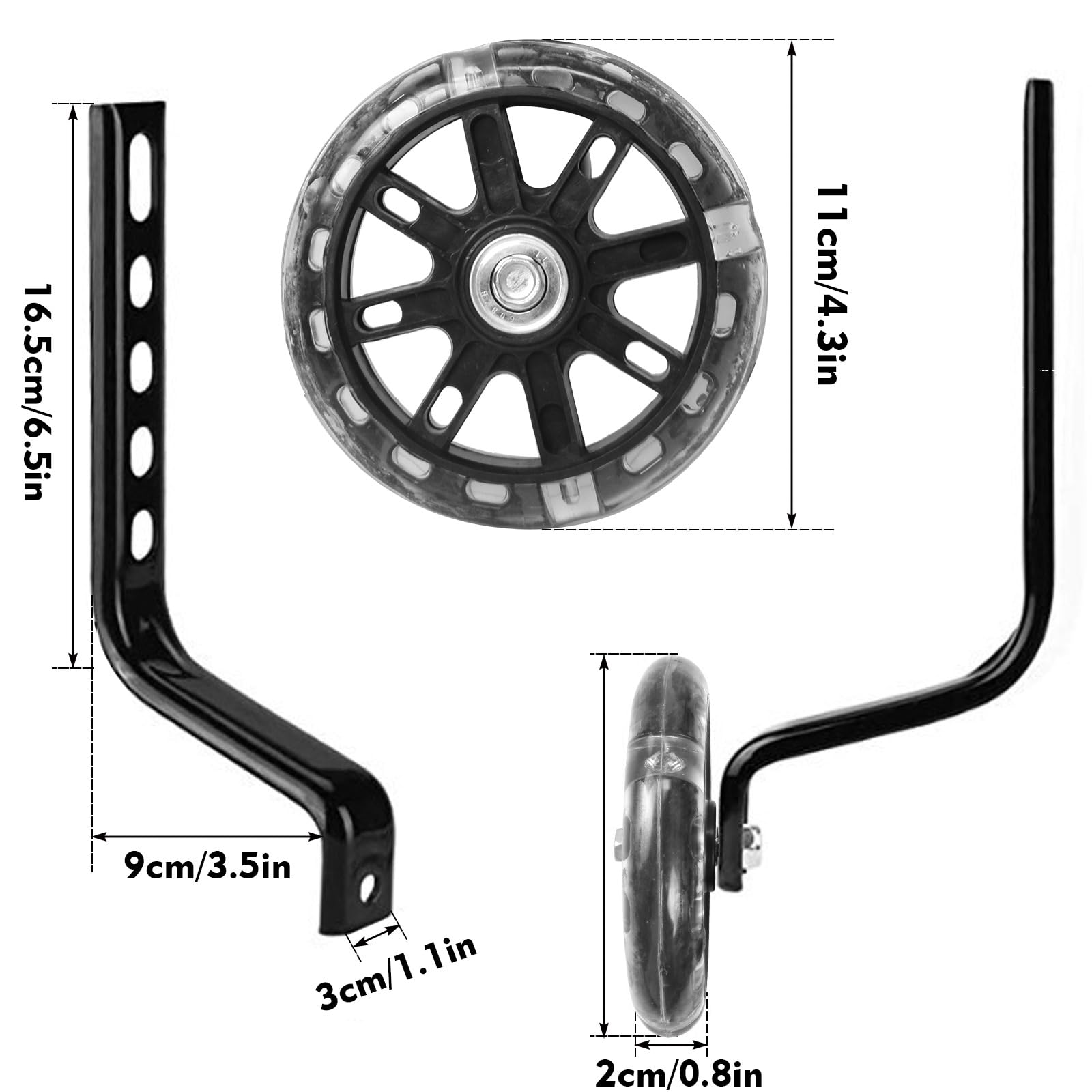 自転車補助輪 子供用のトレーニングホイール キッズ 子供 練習用 自転車安定器 補助輪 サイクル補助輪 補助りん バランス補助 練習用 補助輪アクセサリー 調整可能 取付簡単 静音設計 12/14/16/18/20インチの男の子と女の子の自転車用のより安定した取り付けキット(1ペア、ブラック)