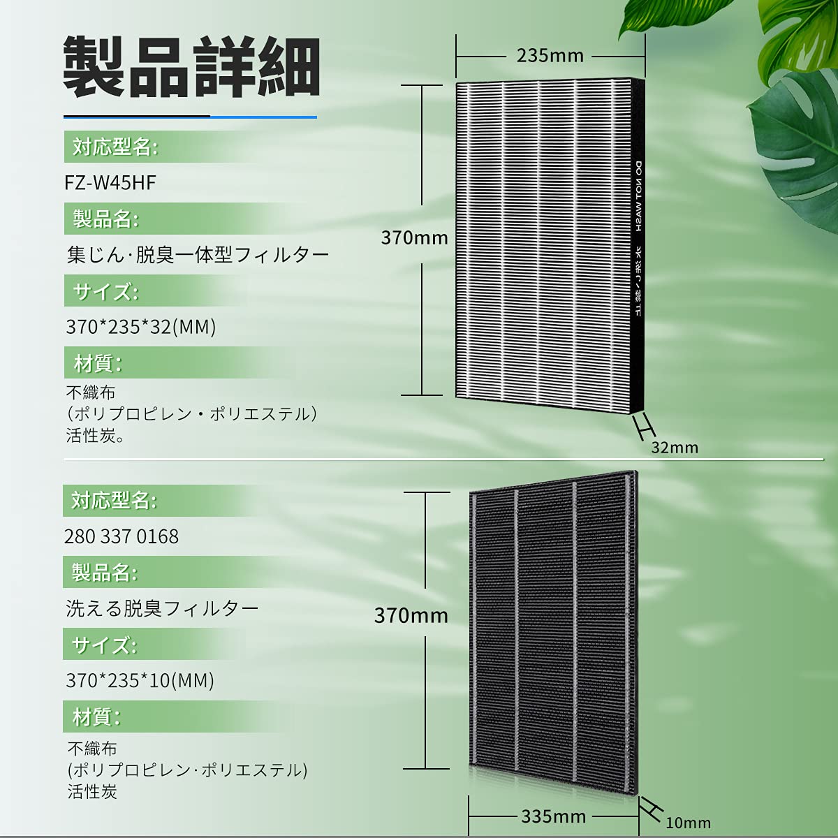 HTWORK 加湿空気清浄機用 集じんフィルター FZ-D50HF と 脱臭フィルター FZ-D50DF
