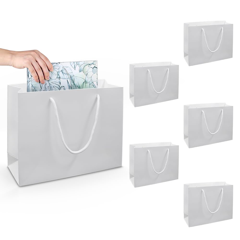 紙袋 手提げ プレゼント袋 ギフトバッグ 小 引き出物袋 縦型 おしゃれ 厚手タイプ 丈夫で耐久性があり 再利用可能 クラフト紙袋 結婚式 包装 パーティー 誕生日 ホワイトデー 贈り物 お土産 クリスマス用ギフトバッグ(27*8*21cm・6枚セット・白)