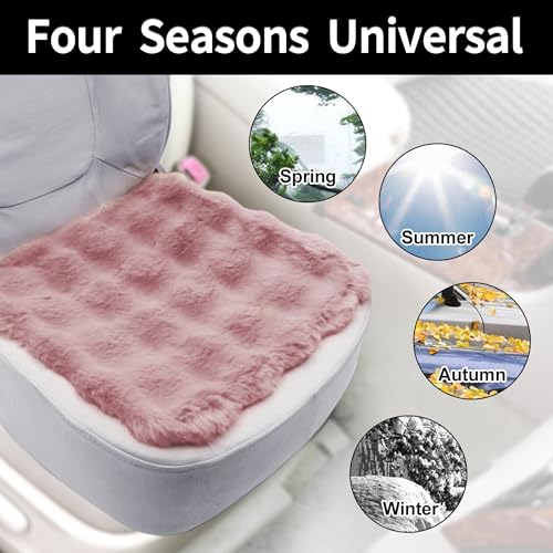 X AUTOHAUX もこもこカーシートクッション 可愛い・おしゃれシートカバー 運転席 助手席 後部座席 軽自動車 ロングファー 座布団 車用シート滑り止め フワフワ ピンク 2枚セット(運転席+助手席)