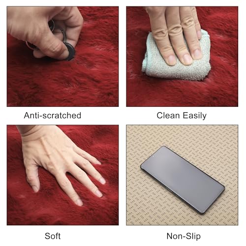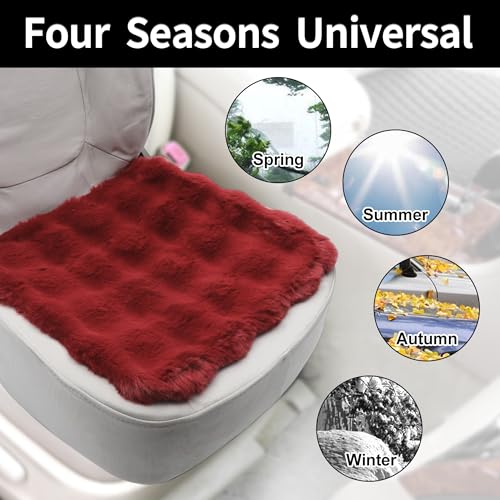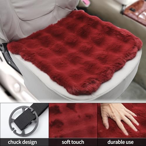 X AUTOHAUX もこもこカーシートクッション 可愛い・おしゃれシートカバー 運転席 助手席 後部座席 軽自動車 ロングファー 座布団 車用シート滑り止め フワフワ ワインレッド 2枚セット(運転席+助手席)