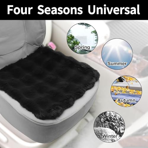 X AUTOHAUX もこもこカーシートクッション 可愛い・おしゃれシートカバー 運転席 助手席 後部座席 軽自動車 ロングファー 座布団 車用シート滑り止め フワフワ ベージュ 2枚セット(運転席+助手席)