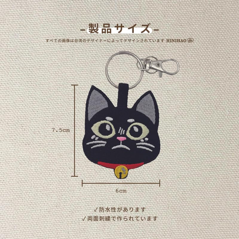 [HINIHAO HI,] 1 pc 黒猫 両面刺繍キーホルダー