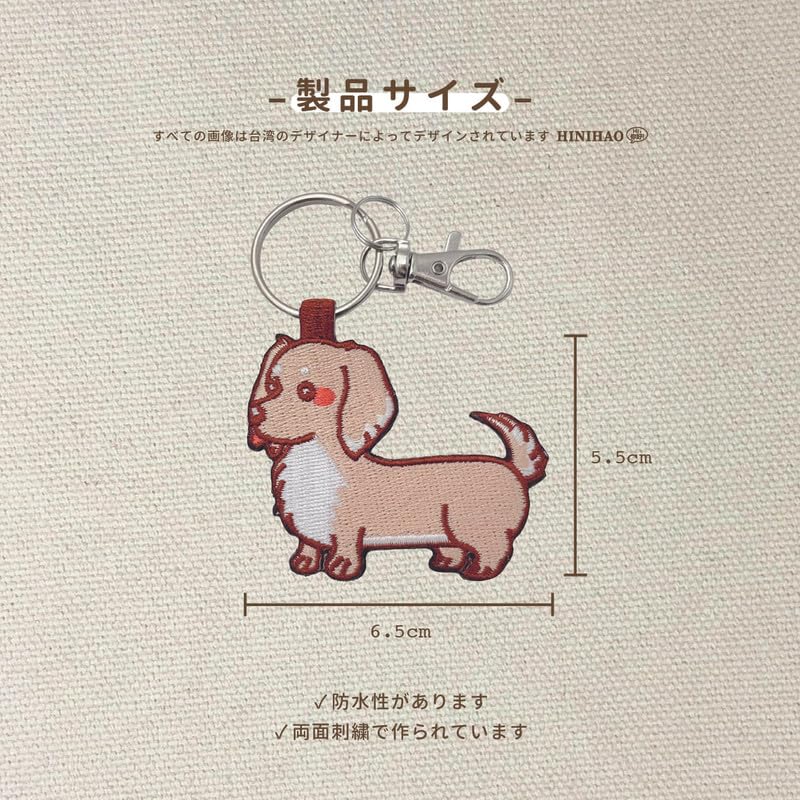 [HINIHAO HI,] 1 pc クリーム色のダックスフンド 両面刺繍キーホルダー
