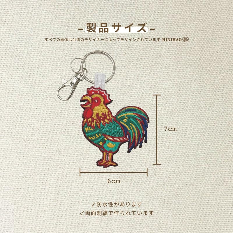 [HINIHAO HI,] 1 pc 両面刺繍キーホルダー - 雄鶏(おんどり)