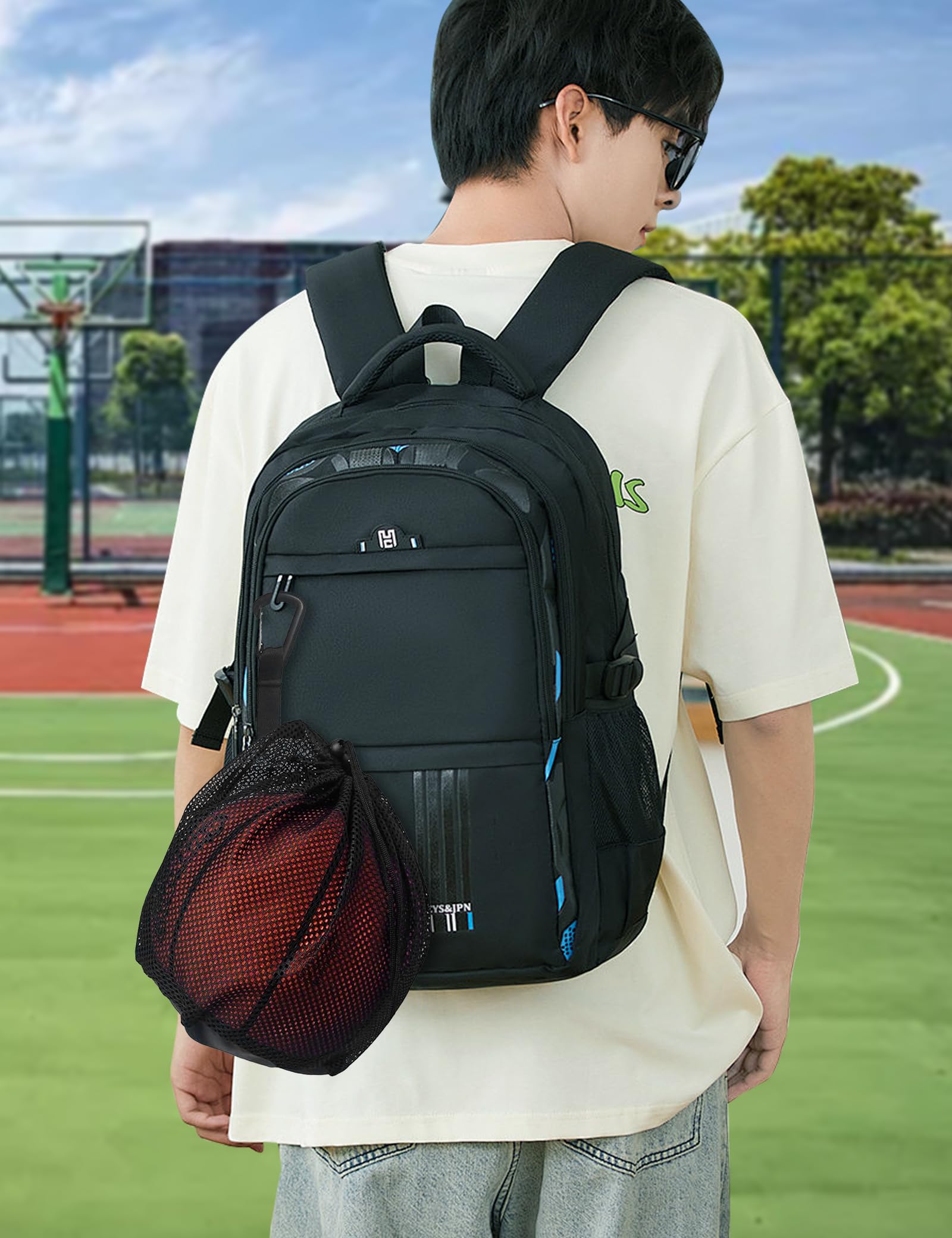 YFFSFDC バスケットボールバッグ 収納ポケット付 防水 7号球 バスケ用リュック 肩掛け 手提げ (ブラック)