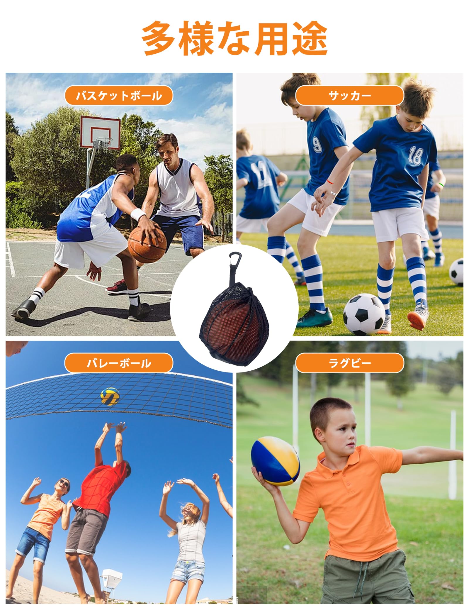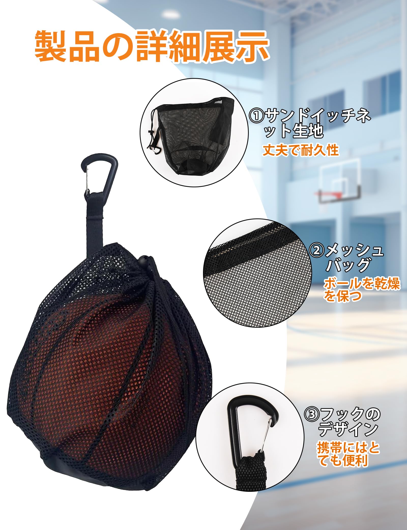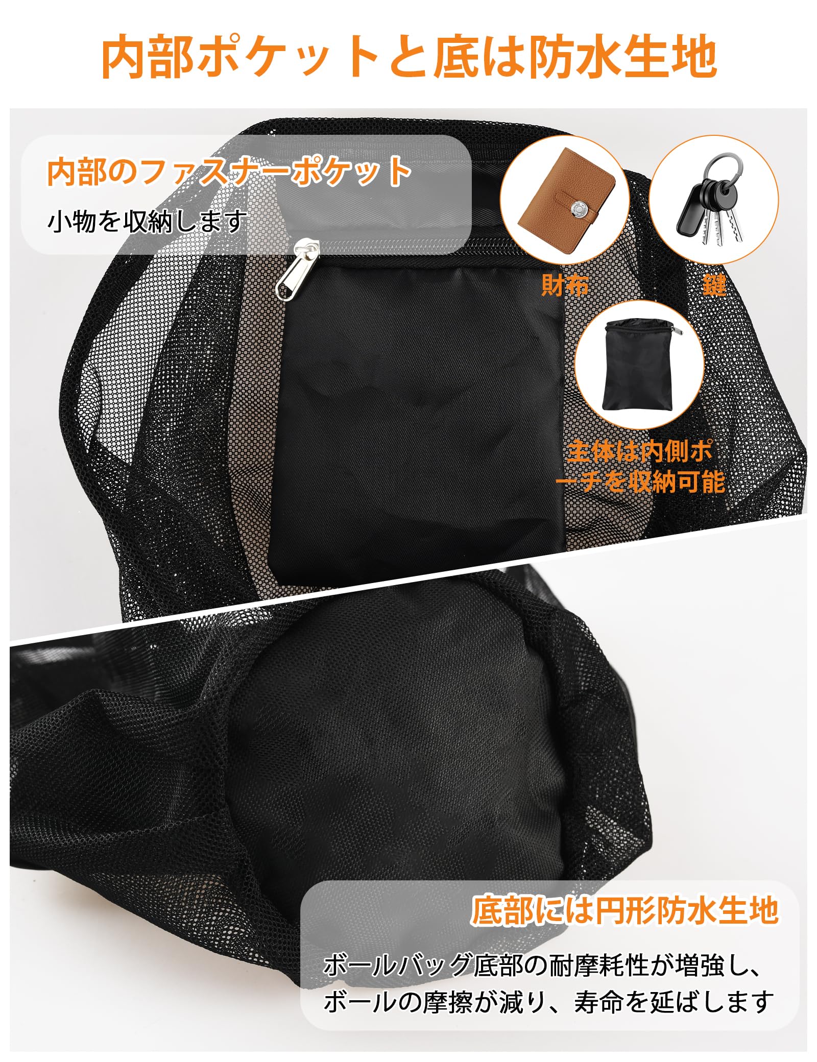 バスケットボール ケース【改良・開口サイズ増大】 巾着メッシュ サッカーボール入れ袋 フック/ファスナーポケット付き 軽量 小物収納 バレーボールバッグネット 大容量 ボールぶくろ 多機能 旅行/キャンプ/スポーツ用 キッズ/小学生/子供に向け