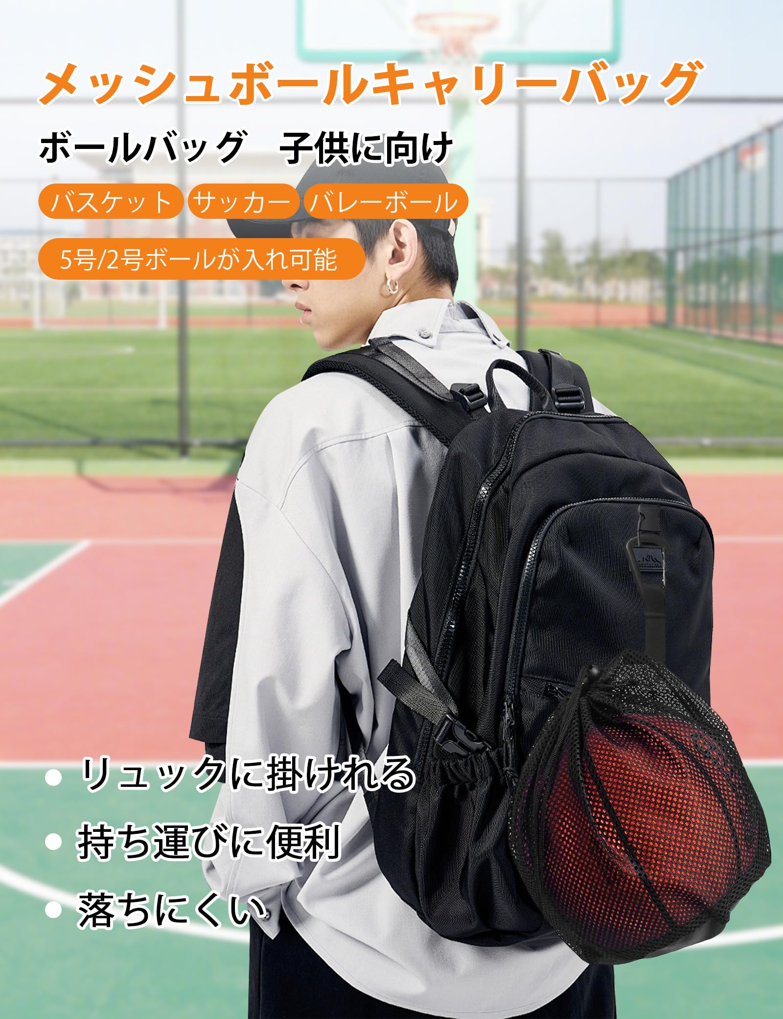 バスケットボールバッグ ボールバッグ リュック バスケットボール サッカーボール 入れ ボールケース ジムサック ナップサック スポーツバッグ 大容量 撥水 軽量 部活 運動 旅行用 メッシュ袋付
