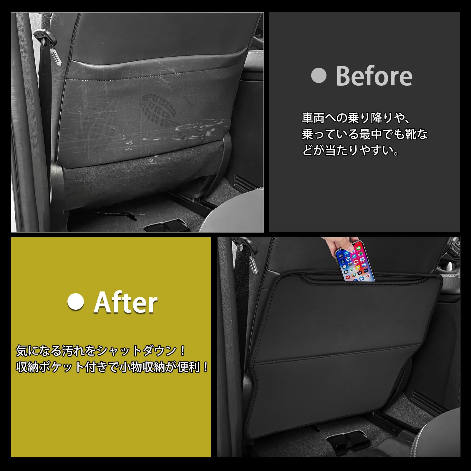 バックプロテクター 後部座席 シートバックカバートヨタ 新型 ヴェルファイア アルファード 40系 SANQUUQOO バックキックマット 後部座席収納 小物収納 汚れ保護 防水防汚 キズ防止 蹴り防止 保護マットカー用品 内装グッズ 取り付け簡単 便利グッズ 運転席 助手席 2Pセット
