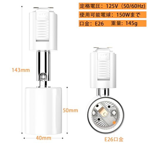 xydled ライティングバー用スポットライト 電球なし E26口金 ダクトレール用照明器具 ホワイト 2個セット