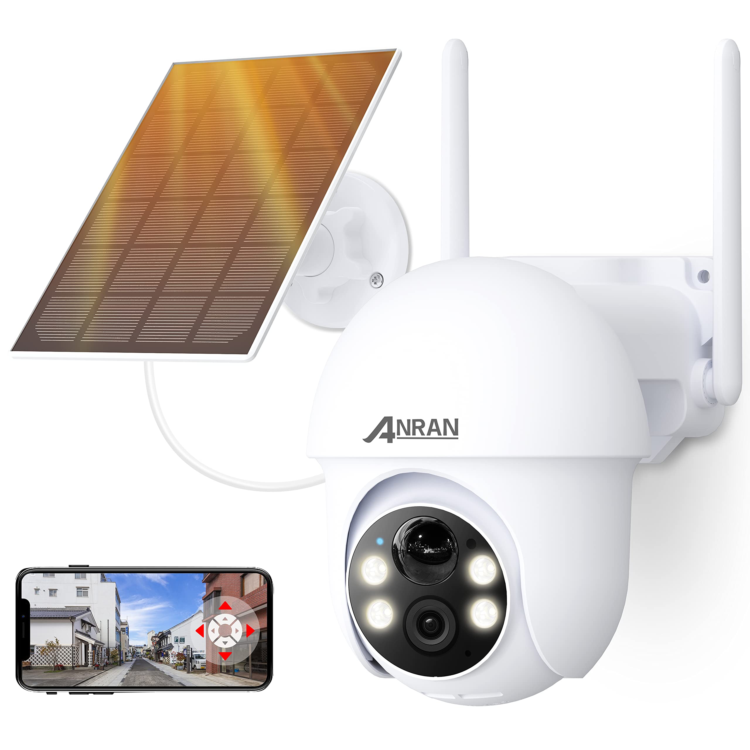 【強化版500万 4灯夜間カラー撮影・Alexa対応】 ANRAN 防犯カメラ 屋外 ソーラー 電源不要 完全無線 長時間稼働 5DBiWiFi強化 5MP監視カメラ 屋外ソーラー 屋外防犯カメラ ワイヤレス 360°広角撮影 検知エリア PIR人体検知 音光威嚇 警報通知 家族共有 H.265+動画圧縮技術 SDカード/クラウド録画保存IP65防水防塵 Q01max(2.4Gwifi対応)