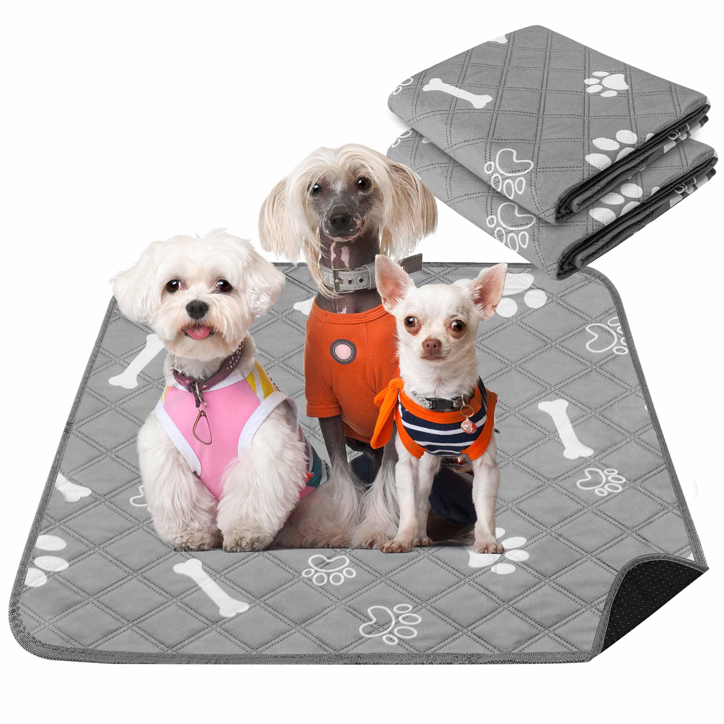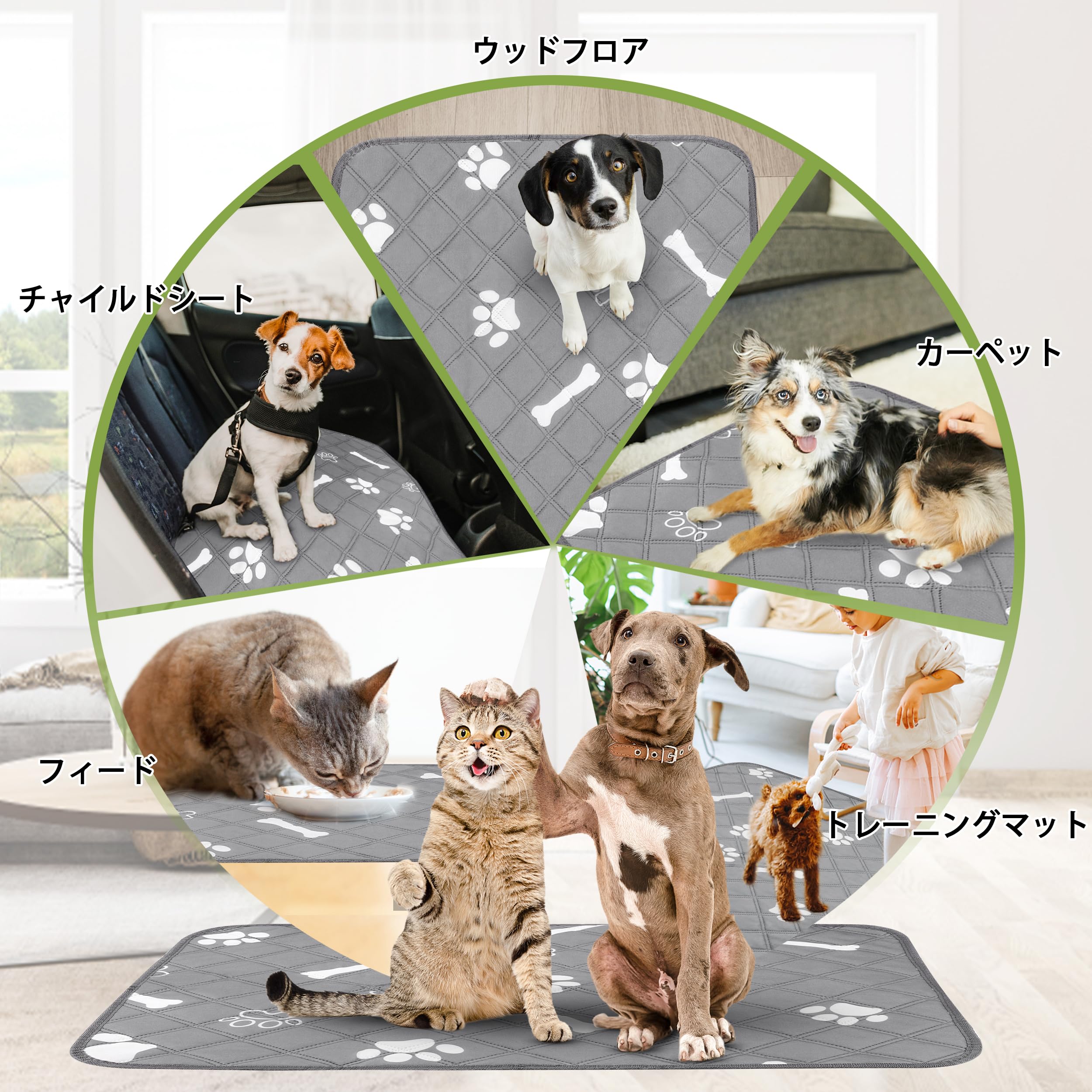 Enkarl ペット用おしっこマット 犬 猫用洗えるペットシーツ ペットマット おしっこパッド 洗える 繰り返し利用可能 防水 速乾 消臭 滑り止め 漏れにくさ 多頭飼い 大判サイズ トイレシート 下敷き マット ペットボウル付き (183×183cm(2枚), ダークグレー)