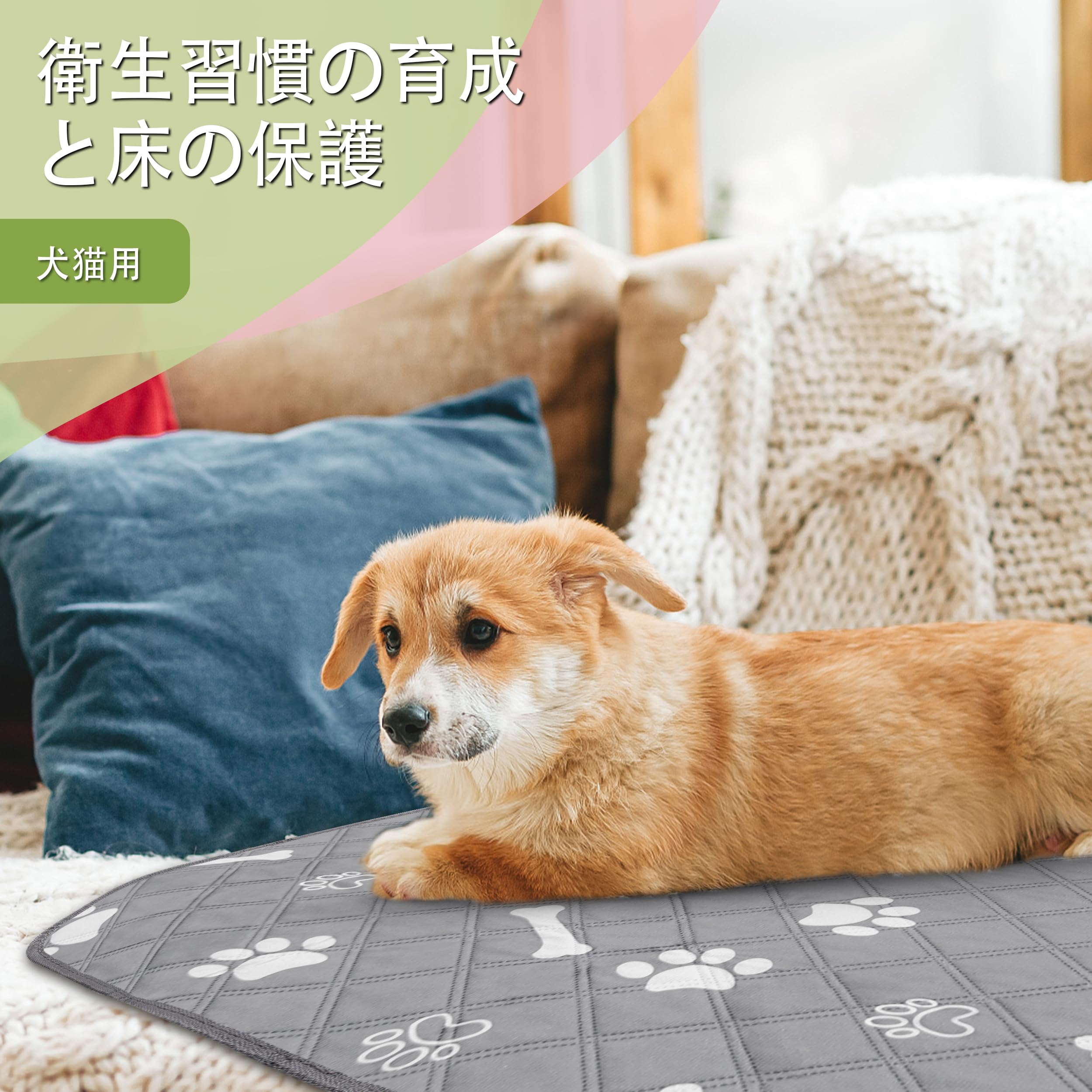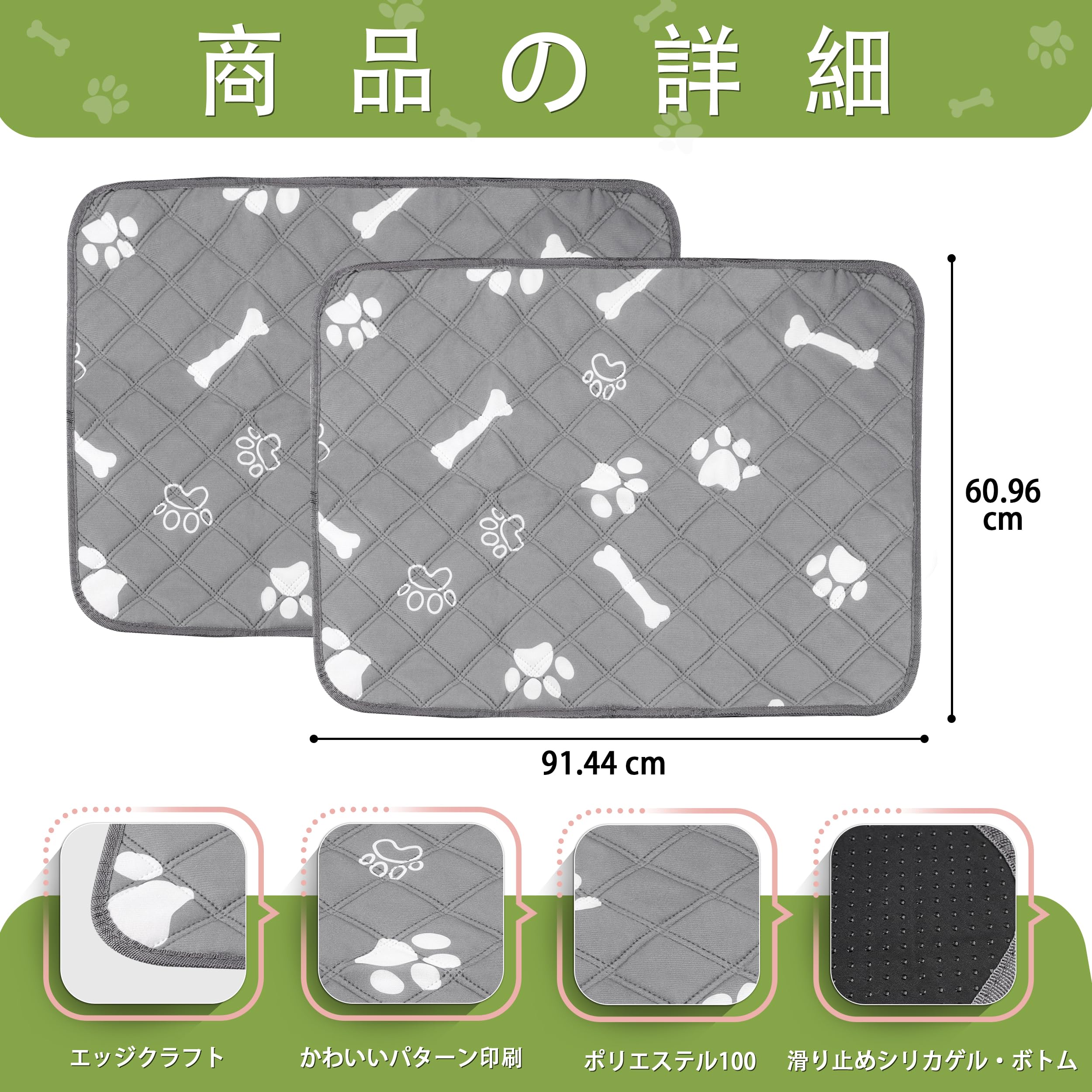 Sunframe 洗える ペットシーツ 犬 滑り止め 猫用 ペットマット 防水 強い吸収 トイレシート おしっこマット 洗濯機で丸洗い 厚型 60x90cm 2枚 グレー
